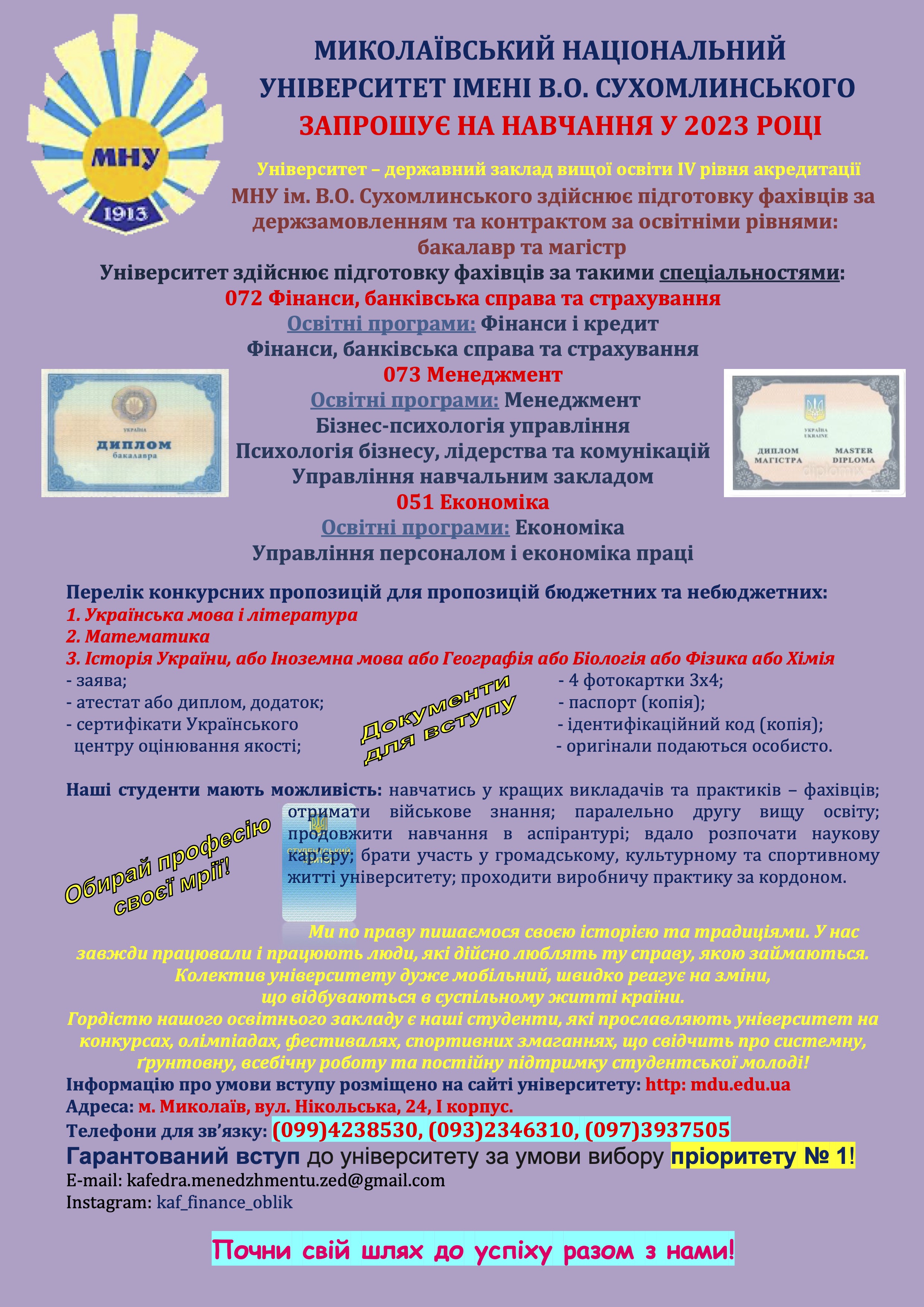 Приймальна комісія звертає Вашу увагу на те, що для вступу на навчання до магістратури за спеціальностями 051 Економіка, 072 Фінанси, банківська справа, страхування та фондовий ринок, 073 Менеджмент, 053 Психологія на основі освітнього ступеня бакалавра необхідно складати єдиний вступний іспит Читати далі