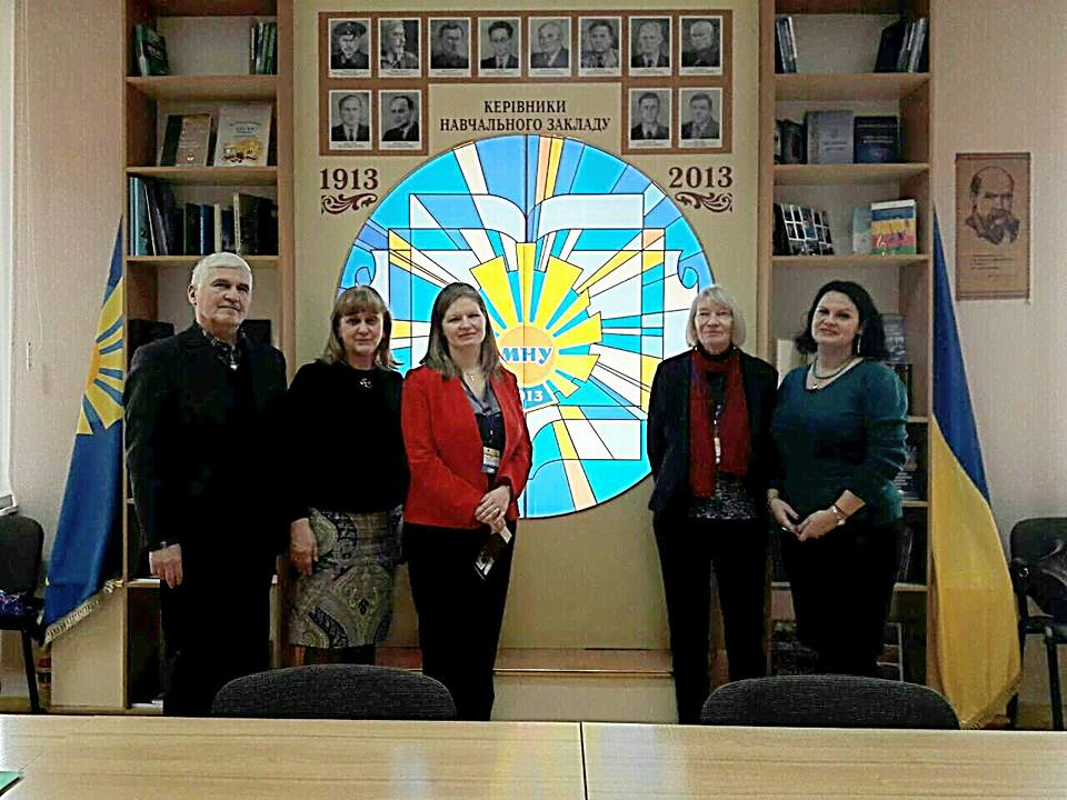 З метою апробації проміжних результатів проекту, спільного проведення занять із викладачами кафедри англійської мови і літератури та проведення науково-методичних семінарів для студентів і викладачів кафедри з 27 лютого по 4 березня 2017р. із робочим візитом перебувають представники Школи мов та соціальних наук Астонського університету (Велика Британія) доктор Муна Морріс Адамс та викладач, директор центру англійської мови та комунікації Аня Бейлі.