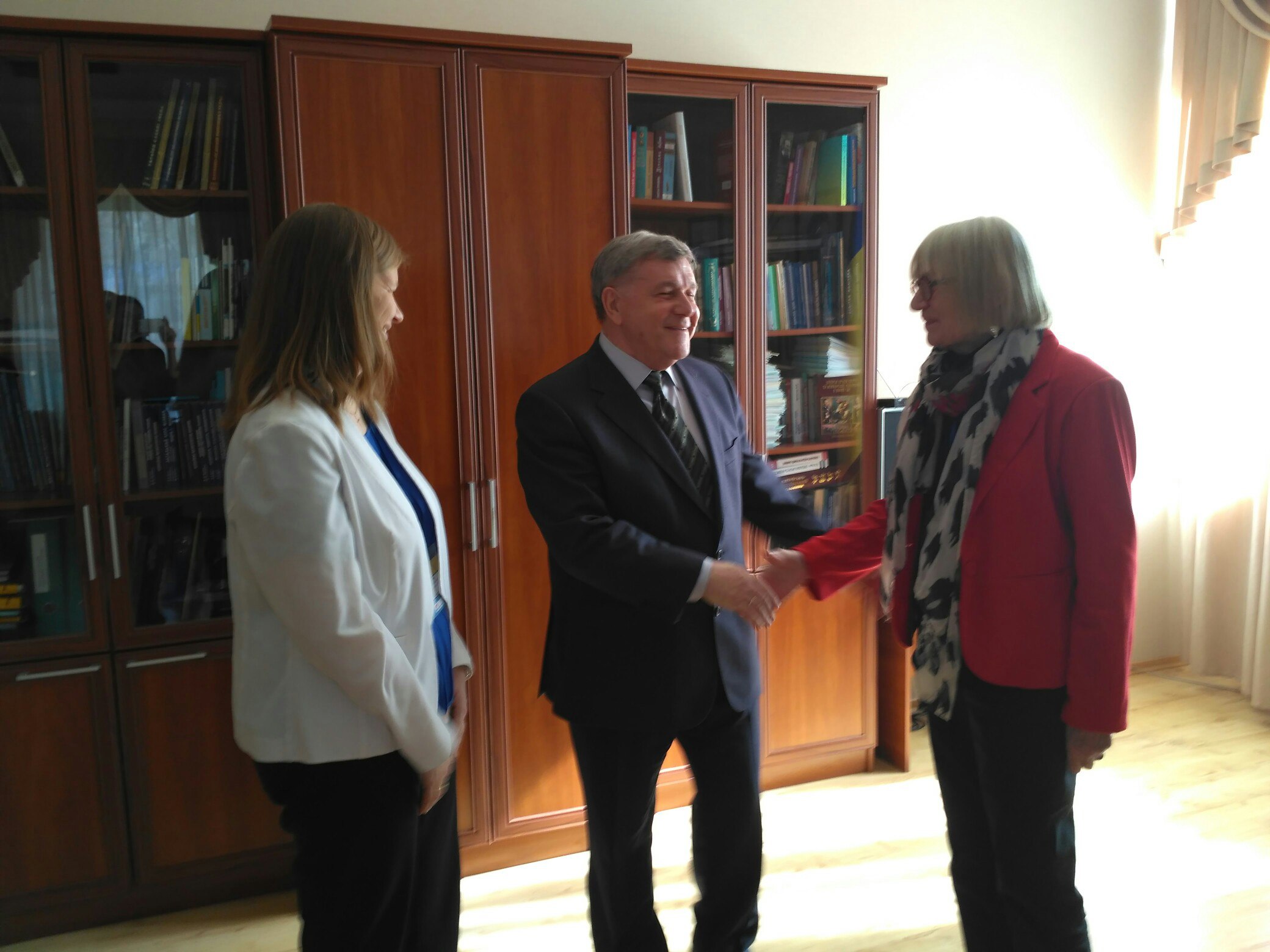 Почесних гостей зустрів ректор університету академік В. Д. Будак: «Астонський университет – один із найкращих університетів Великобританії. Ми з задоволенням вивчаємо досвід закордонних колег по підготовці фахівців із вивчення англійської мови та впевнені, що перші випускники цієї програми будуть цілком відповідати європейським стандартам. Із відгуків студентів, експертів, провідних професорів Астонського університету ми маємо позитивну оцінку по відношенню до наших студентів. Грунтовна робота програми Темпус має своє продовження в проекті Еразмус+, у планах на майбутнє – підготовка не тільки магістрантів, а й відкриття аспірантури».
