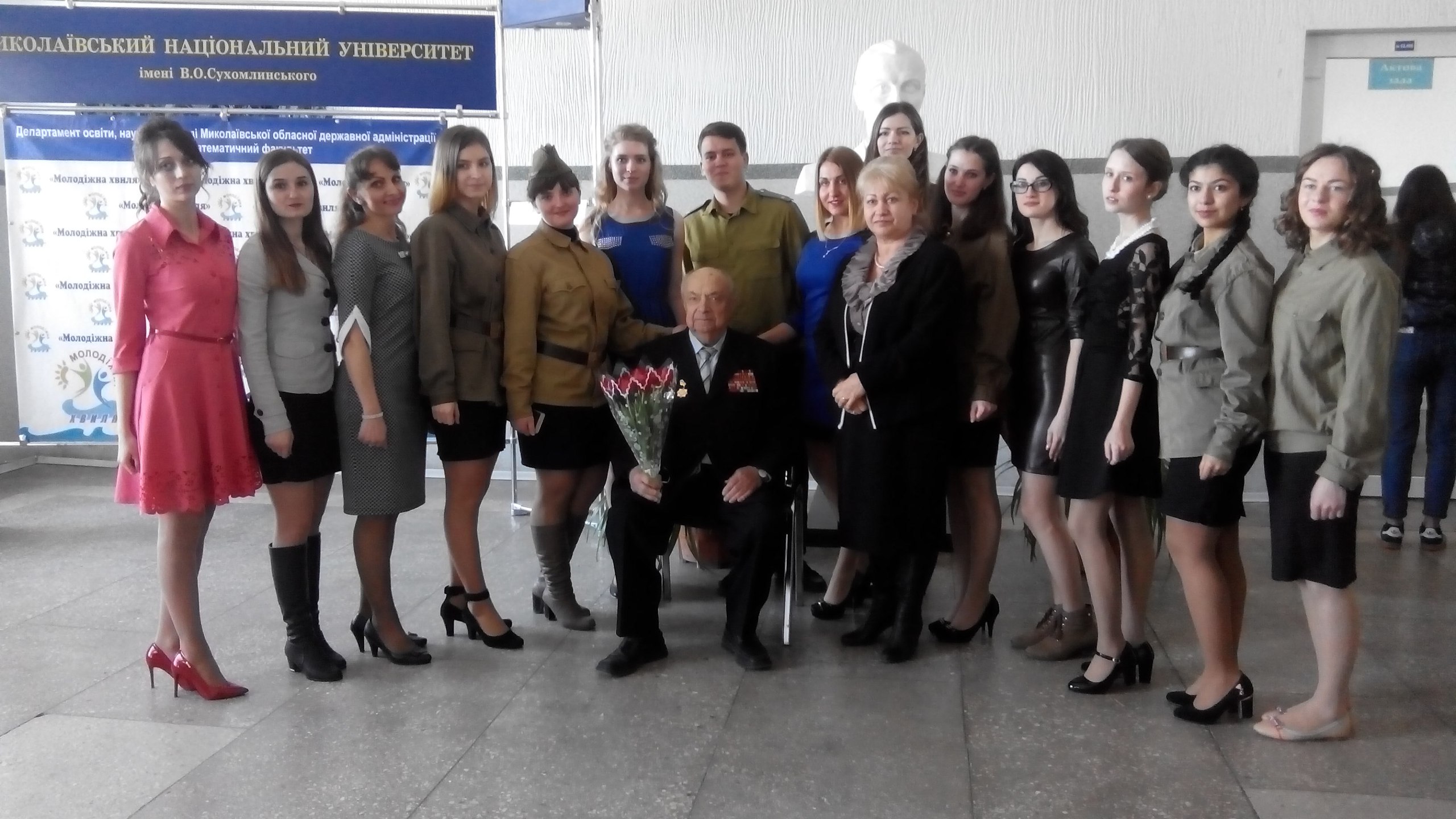 23 березня в актовій залі університету факультет дошкільної та початкової освіти відзначив 73-ю річницю визволення Миколаєва від фашистських загарбників. Почесними гостями свята стали учасник бойових дій, професор, голова ради ветеранів МНУ імені В. О. Сухомлинського Ю. О. Грицай, а також діти війни.