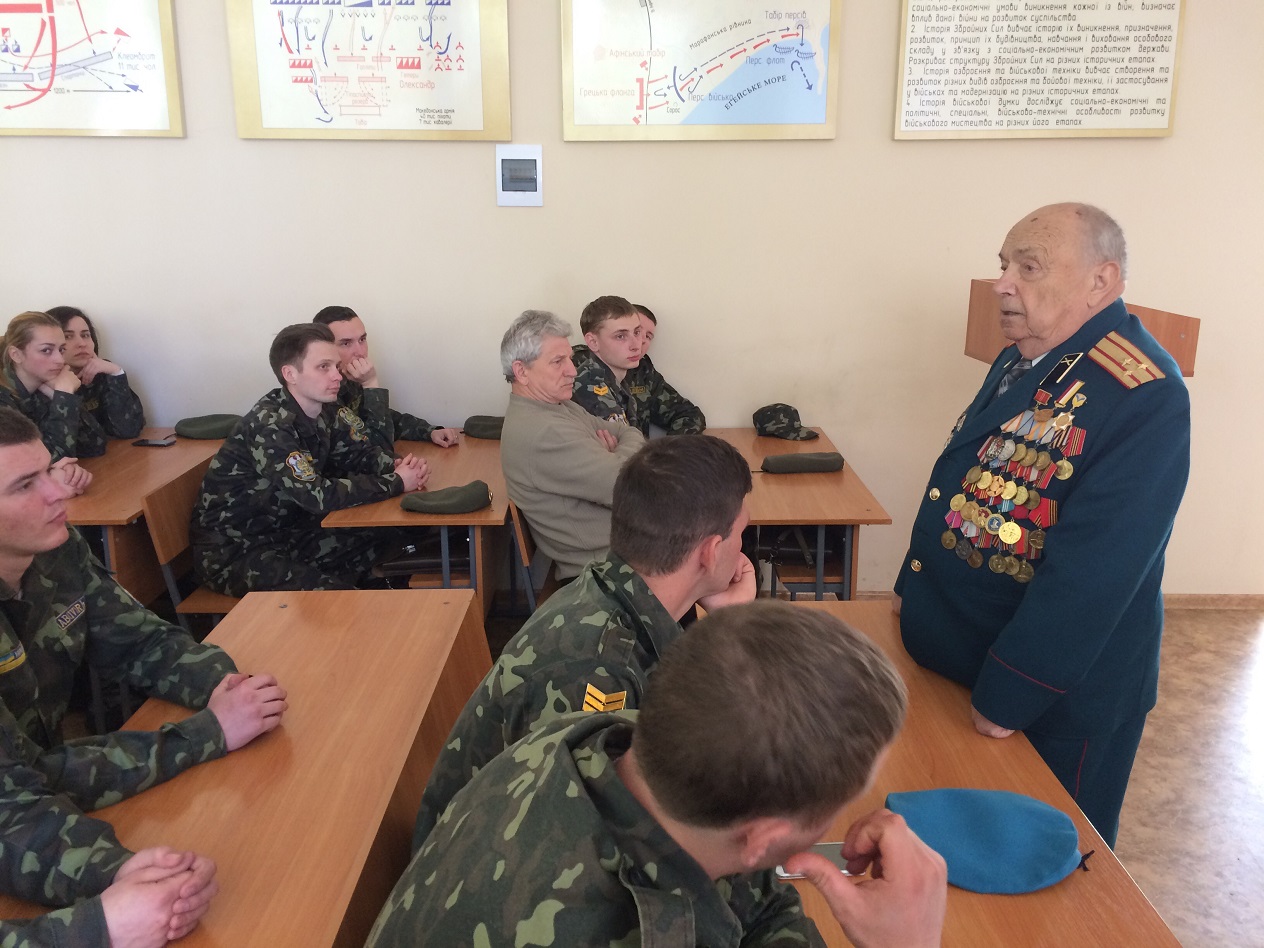 З нагоди 72-ї річниці перемоги в Другій світовій війні та до Дня пам’яті та примирення на кафедрі військової підготовки відбулася зустріч студентів із учасником бойових дій, ветераном Другої світової війни, головою Ради ветеранів МНУ імені В. О. Сухомлинського Грицаєм Юрієм Олександровичем.