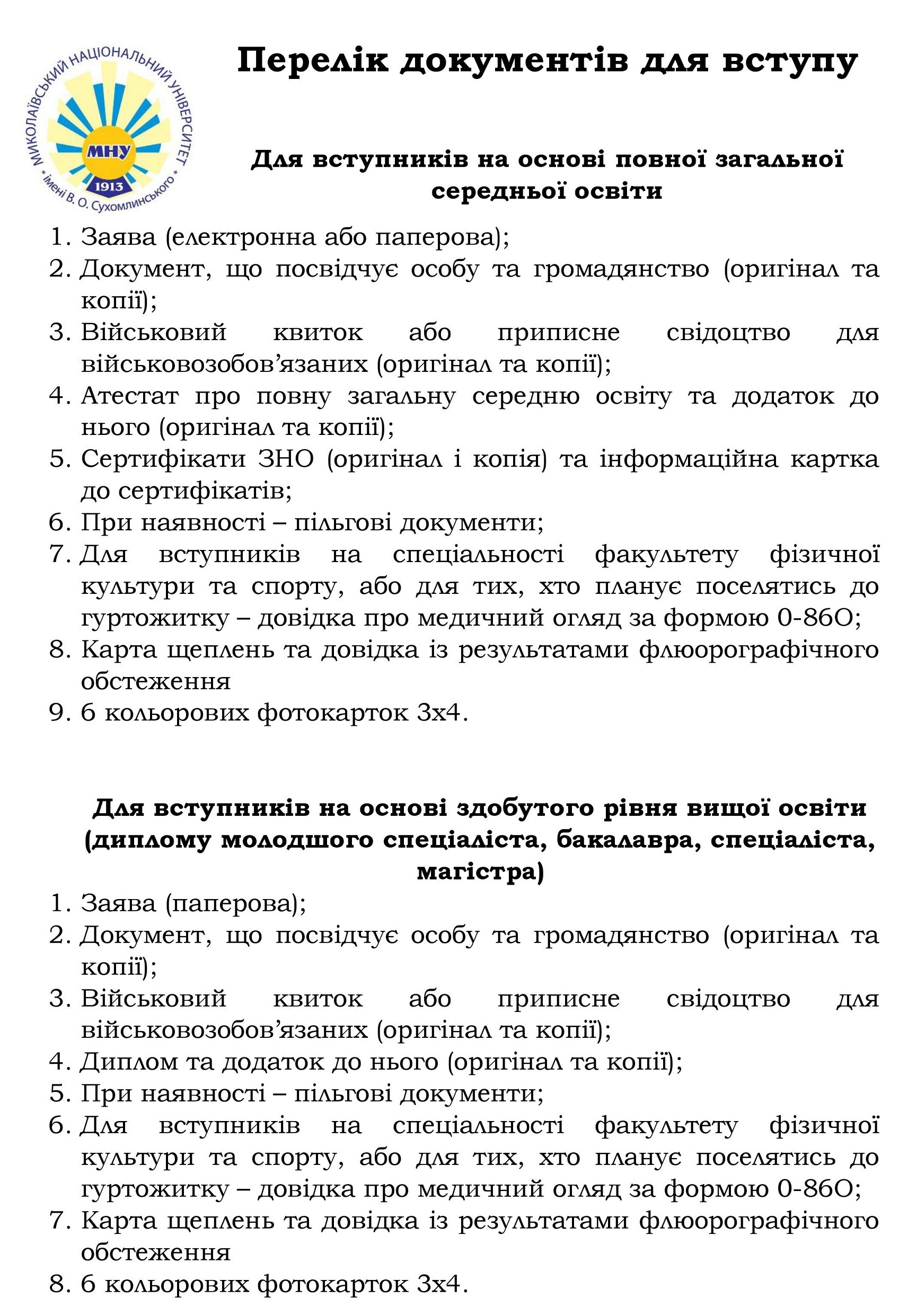 До уваги абітурієнтів! Перелік документів для вступу! Якщо ви знайшли помилку, будь ласка, виділіть фрагмент тексту та натисніть Ctrl+Enter.