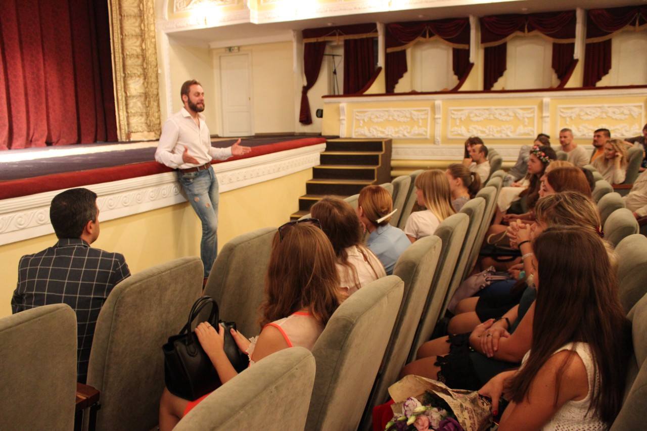 Молодь отримала можливість не лише побувати на першій в Україні інсценізації поеми Івана Франка, а й поспілкуватися з директором театру А. Свистуном, режисером Є.Олійником та акторами вистави.