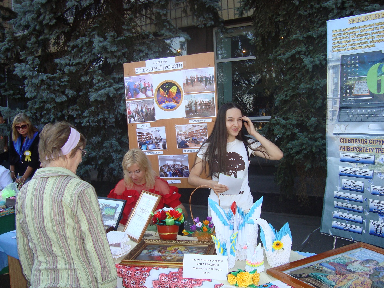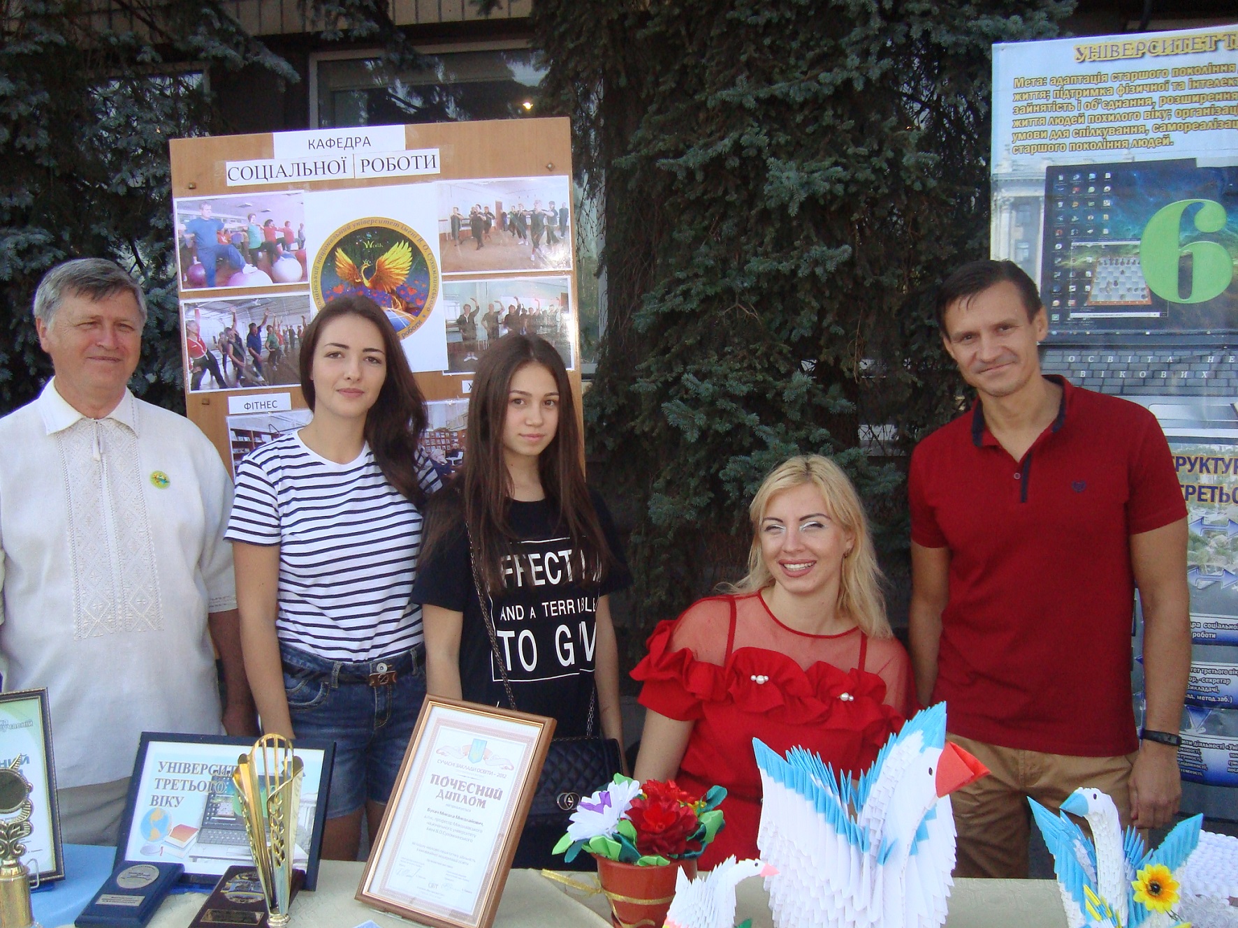 Викладачі та студенти кафедри соціальної роботи представили Освітній центр «Університет третього віку», що успішно діє на базі кафедри вже сьомий рік поспіль. Представники кафедри надавали всім бажаючим детальну інформацію щодо навчання в університеті для людей поважного віку, адже охочих було чимало.