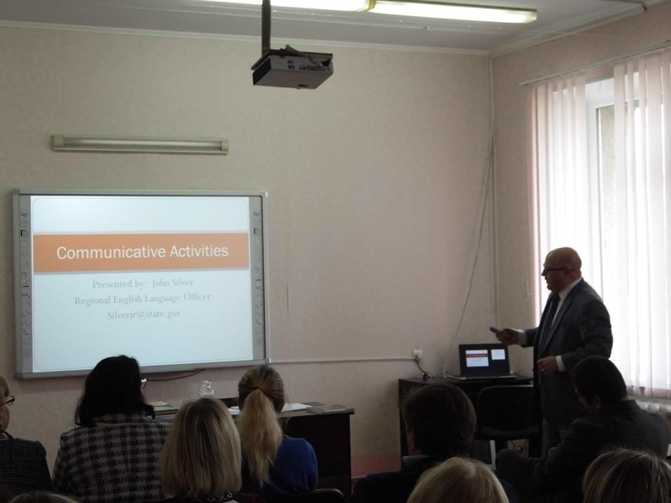 12 січня 2018 року на факультеті іноземної філології відбувся тренінг з методики викладання іноземної мови на тему «Communicative Activities», який провів Аташе з питань викладання англійської мови Посольства США в Україні Джон Сілвер.