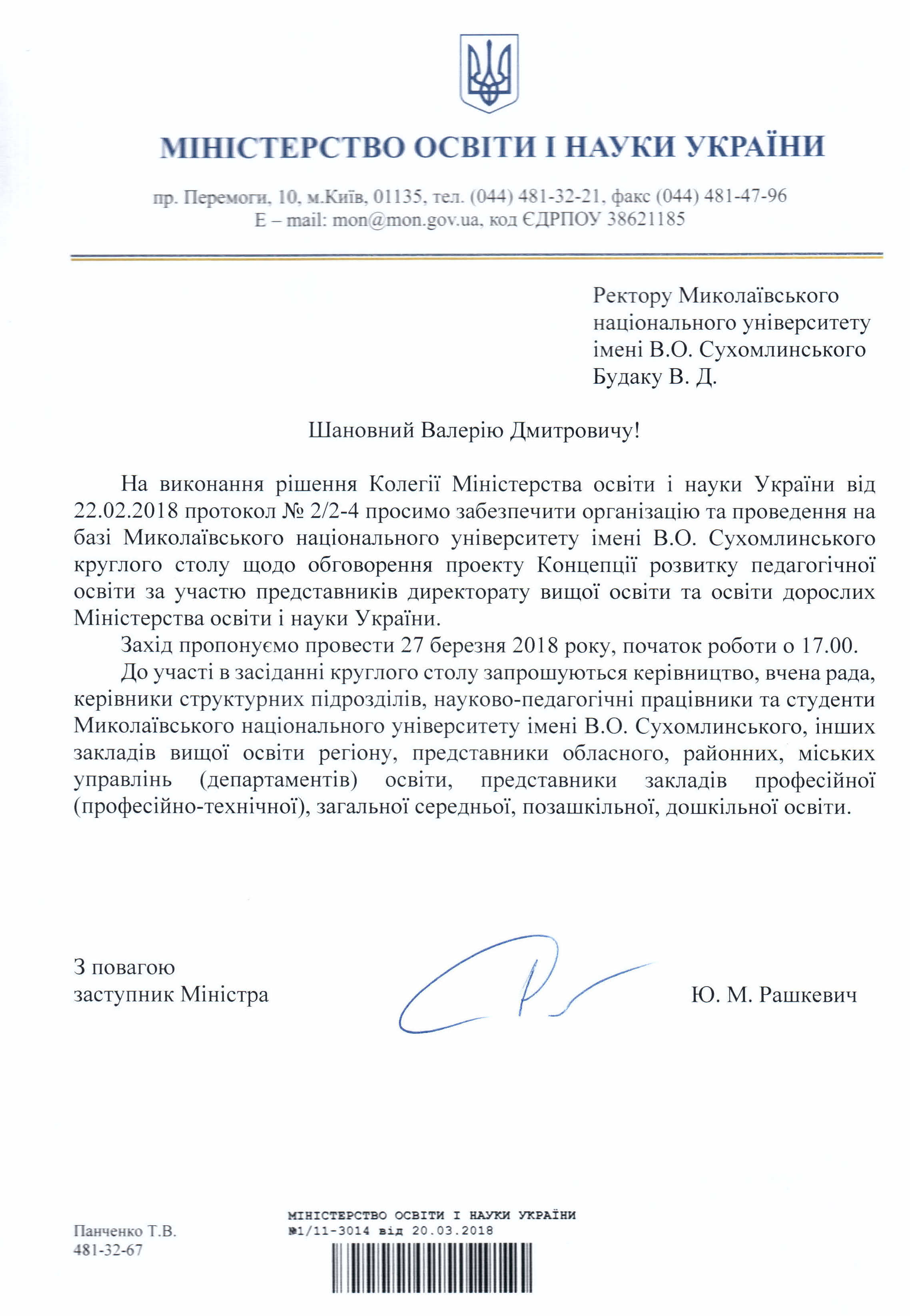 Круглий стіл щодо обговорення проекту Концепції розвитку педагогічної освіти за участю представників директорату вищої освіти та освіти дорослих Міністерства освіти і науки України