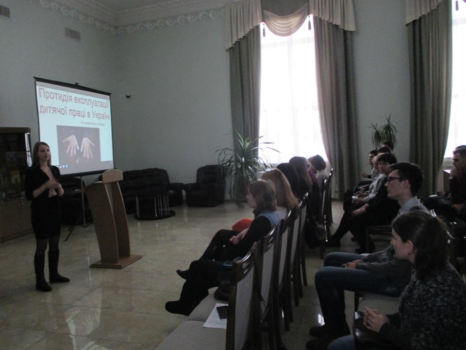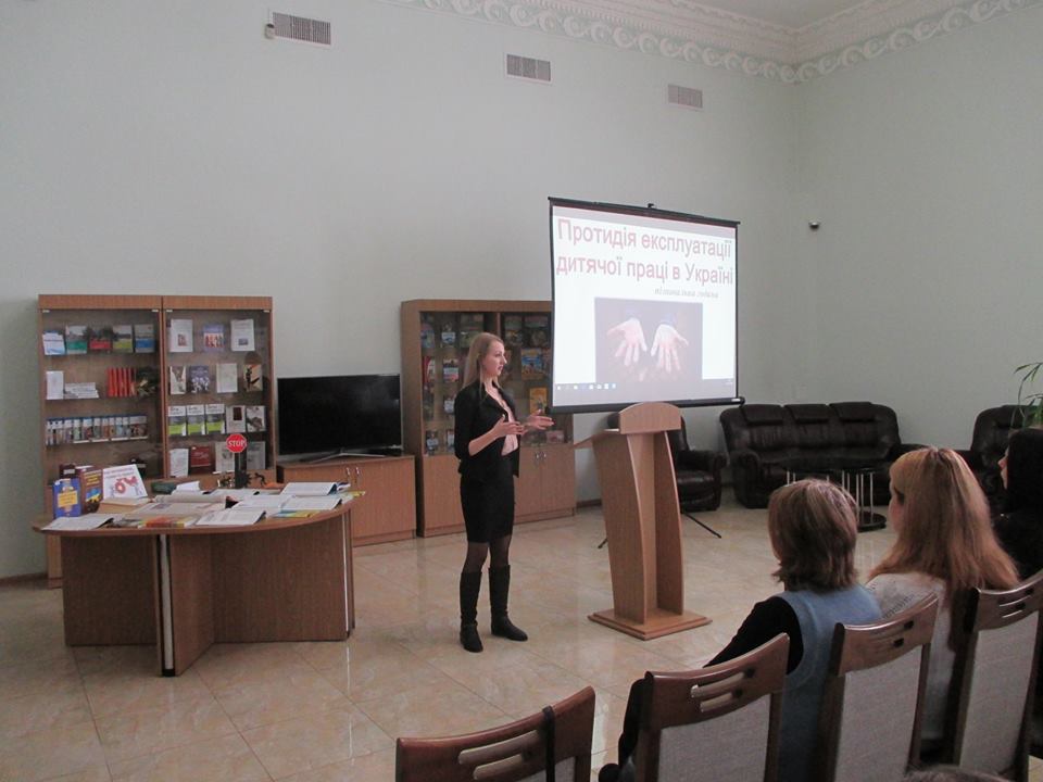 21 березня 2018 року у обласній універсальній науковій бібліотеці ім. О. Гмирьова пройшла пізнавальна година «Протидія експлуатації дитячої праці в Україні» у рамках роботи обласного гендерного центру.