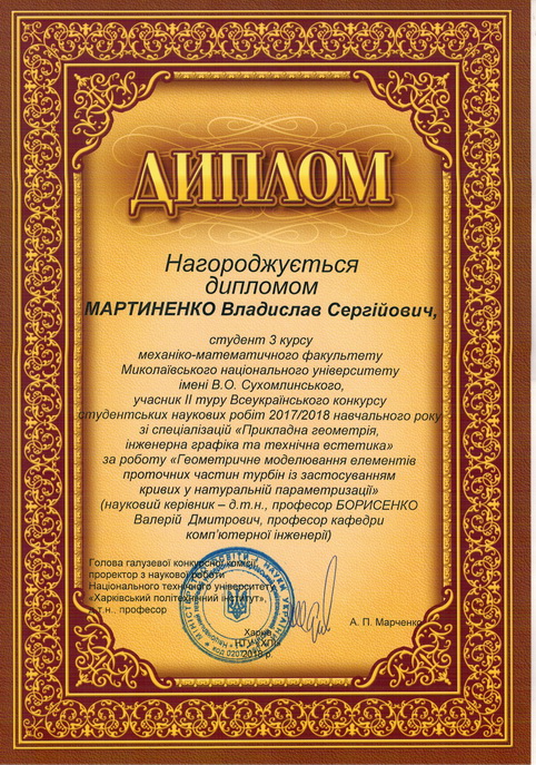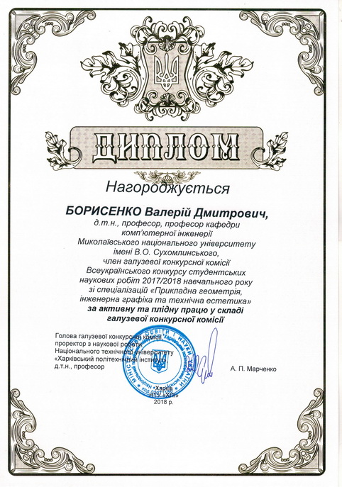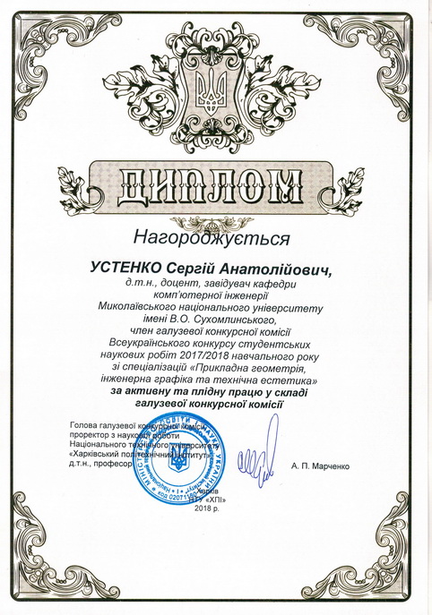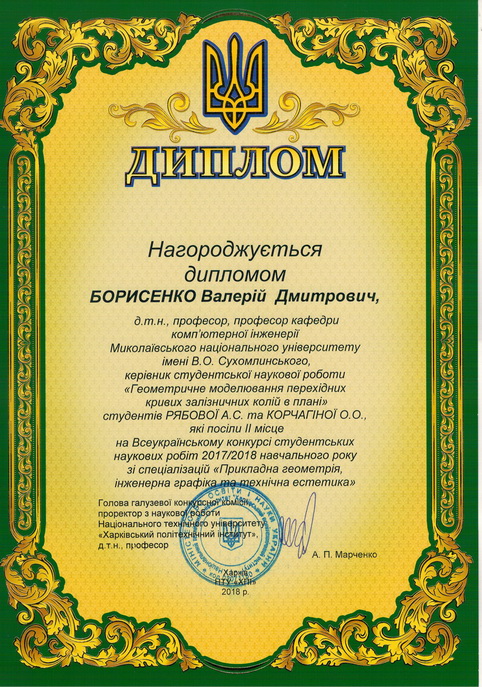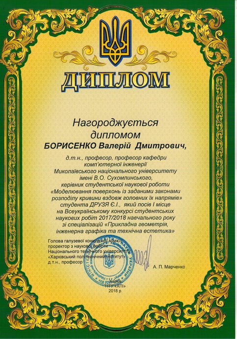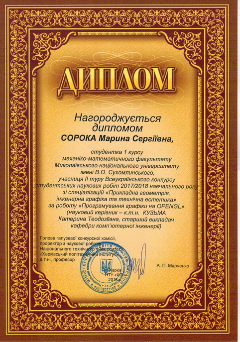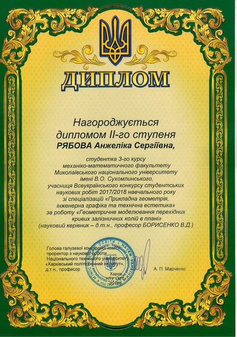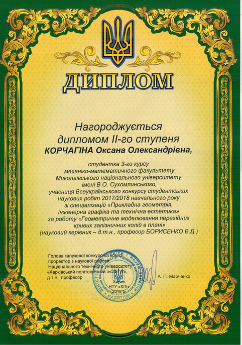 У Національному технічному університеті «Харковський політехнічний інститут» з 16 по 20 квітня 2018 року відбулася підсумкова студентська науково-практична конференція ІІ туру Всеукраїнського конкурсу студентських наукових робіт зі спеціалізацій «Прикладна геометрія, інженерна графіка та технічна естетика».