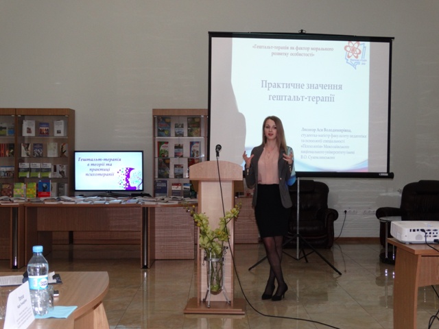 18 квітня 2018 року в обласній бібліотеці відбулося засідання наукової студії за темою «Гештальт-терапія як фактор морального розвитку особистості».