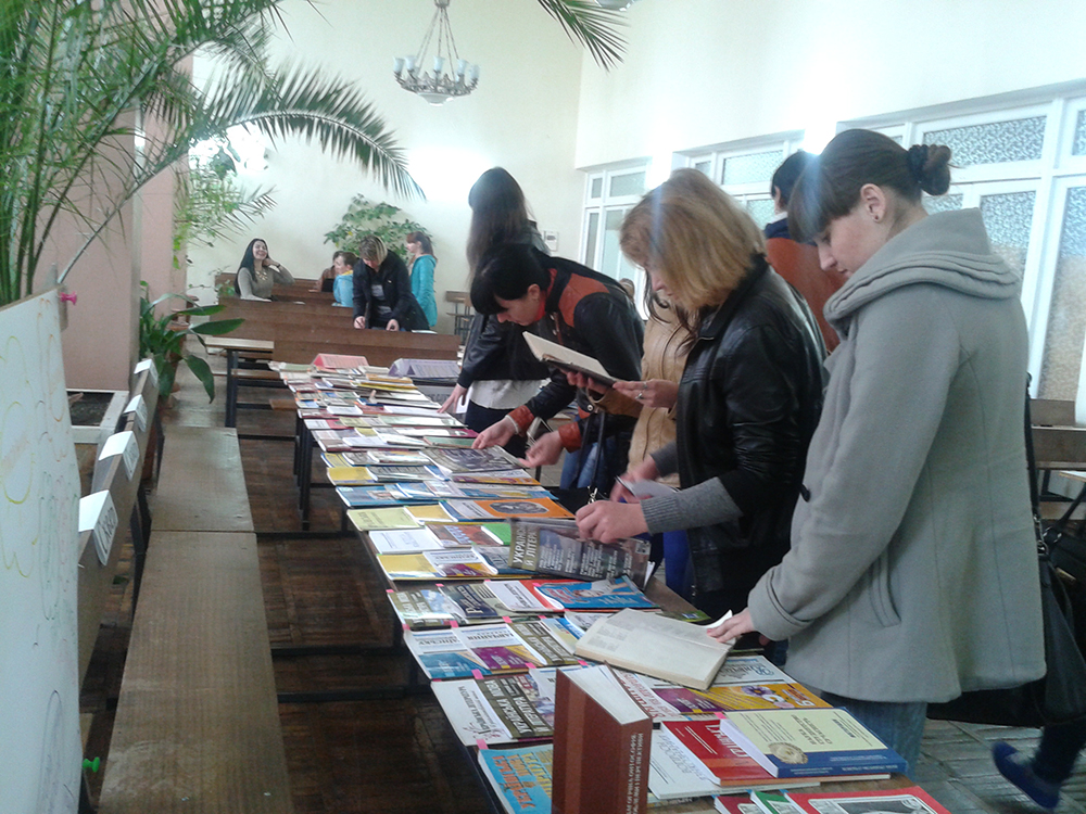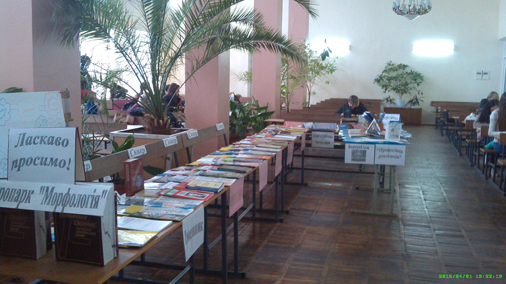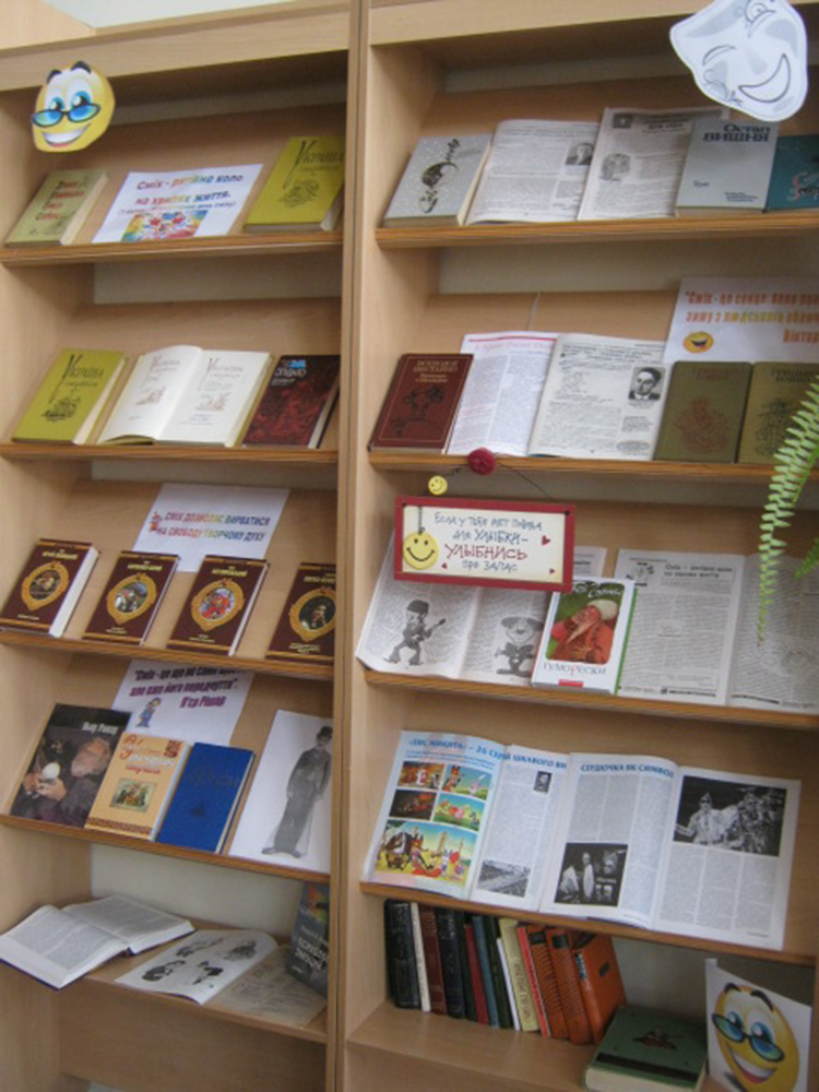 У читальному залі наукової бібліотеки Миколаївського національного університету імені В. О. Сухомлинського 1 квітня 2015 року презентувала одразу дві виставки. Перша – традиційно присвячена Міжнародному дню сміху «Сміх – рятівне коло на хвилях життя», де представлено літературу зі світової скарбниці гумору. Друга – «Морфологічний путівник», де ретельно дібрані матеріали з тем «Морфологія української мови» та «Методика навчання морфології».
