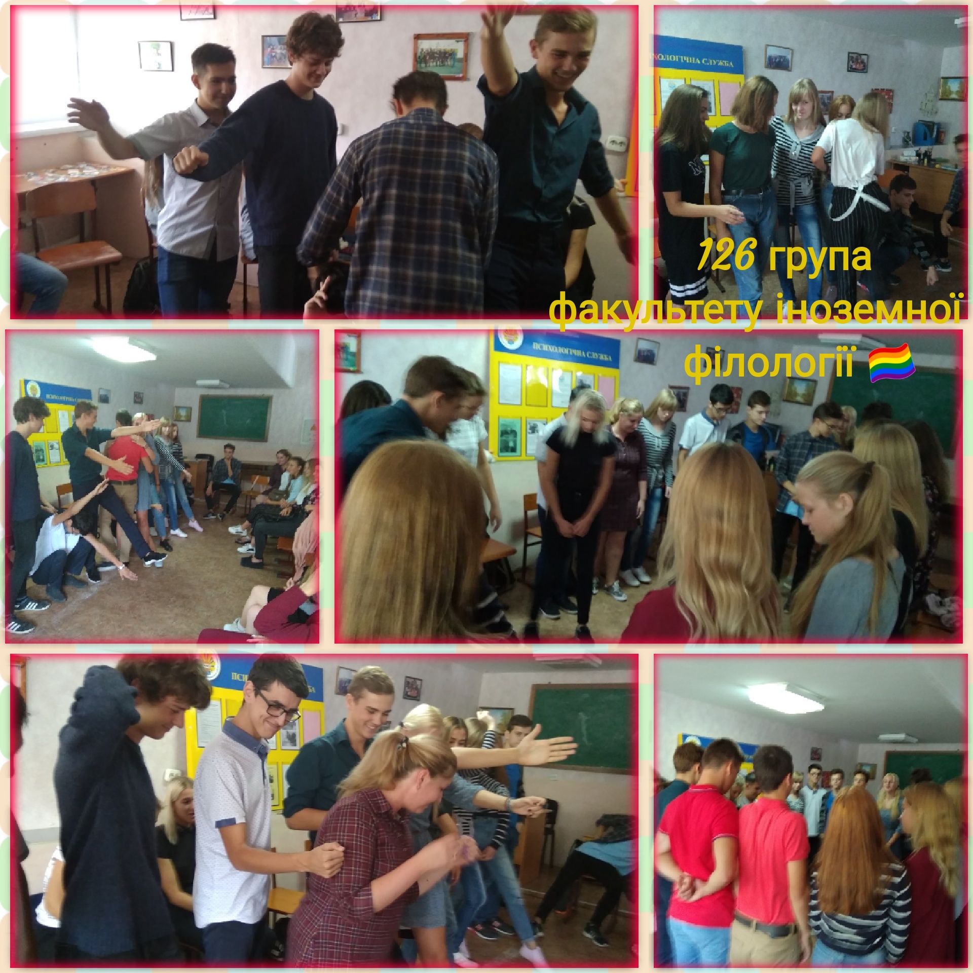 7 вересня 2018 року в рамках роботи Психологічної служби університету відбувся тренінг на тему “Адаптація та згуртованість” для студентів 126 групи спеціальностей “Німецька мова і література” та “Переклад” факультету іноземної філології разом із куратором Агеєвою В. О.