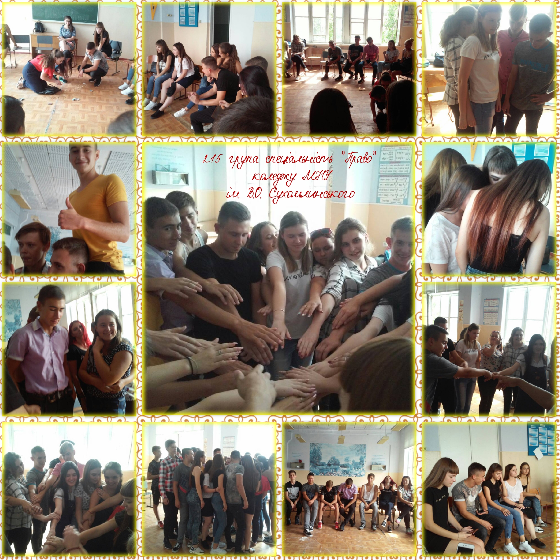 5 вересня 2018 року в коледжі МНУ імені В.О. Сухомлинського був проведений тренінг “Згуртованість та адаптація” для студентів 215 групи спеціальності “Право” разом з їх куратором Берковською К.В.