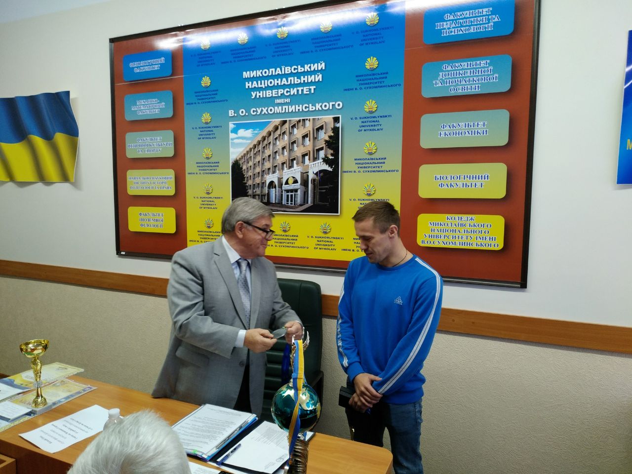 Днями, в Миколаївському національному університеті імені В. О. Сухомлинського відбулось чергове засідання вченої ради університету. На засіданні ректор Валерій Дмитрович Будак нагородив медалями та кубками спортивну гордість університету.