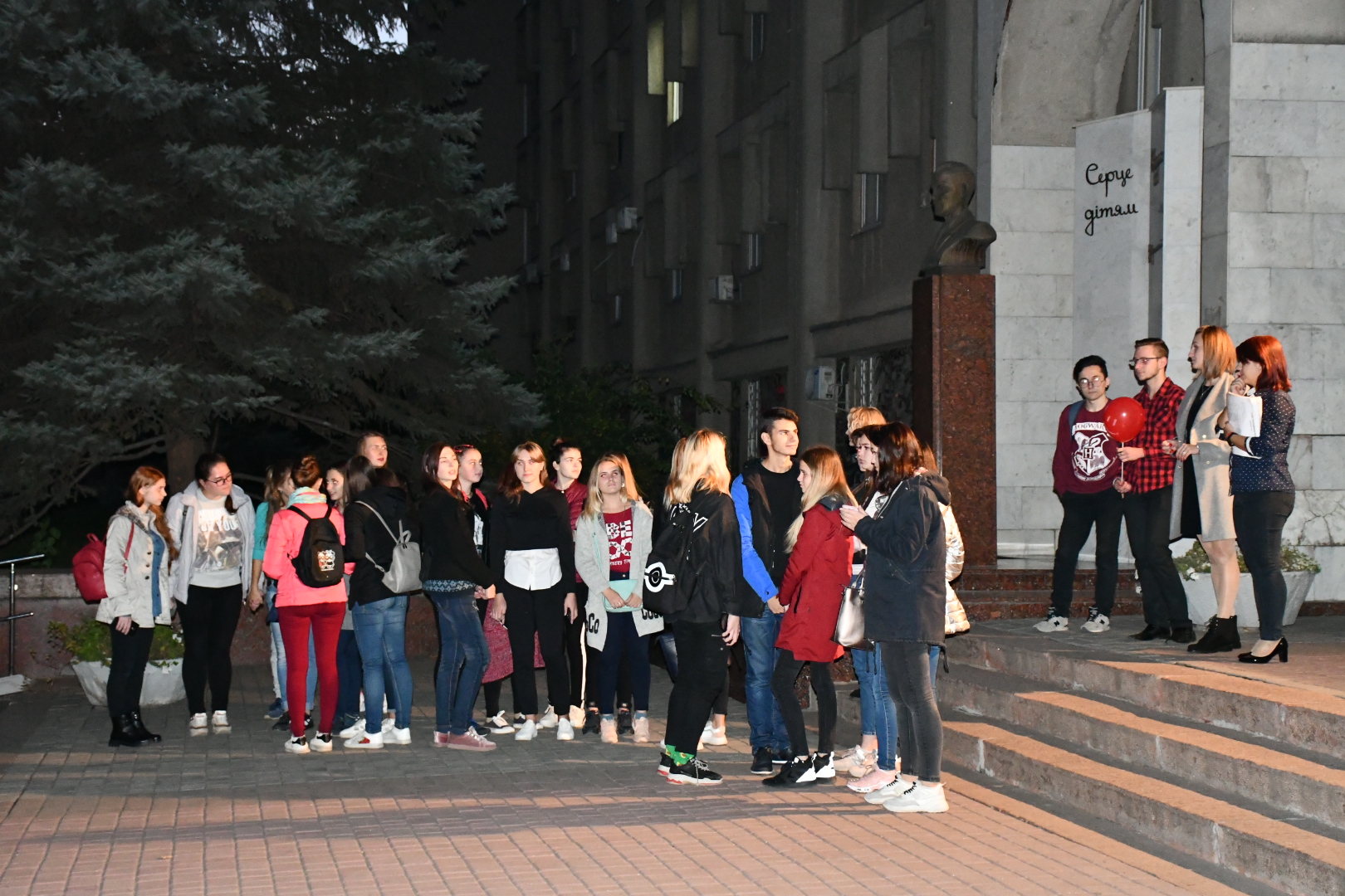 Саме під таким гаслом пройшов нічний квест в Миколаївському національному університеті імені В О. Сухомлинського, організований первинною студентською профспілкою на чолі з О. М. Олексюк. У стінах нашої альма-матері подібний захід проводився вперше, то ж не дивно, що він привернув до себе увагу багатьох студентів, а на факультетах почалися справжні бої за місце під місячним сяйвом. Проте, організатори допустили до участі лише певну кількість представників студентсва, що доторкнулися до нічних таїнств університету, саме це зробило квест по-справжньому особливим.