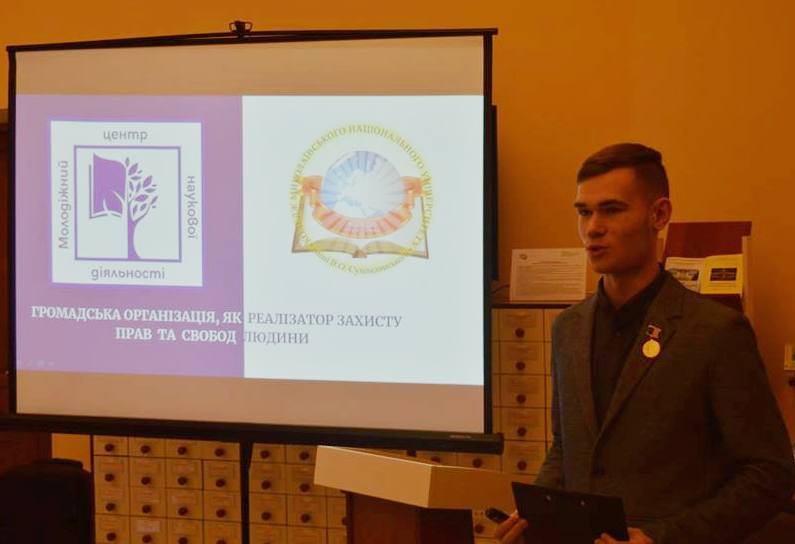 18 грудня 2018 року студенти Коледжу Миколаївського національного університету імені В.О. Сухомлинського ДЕМЧЕНКО КАТЕРИНА та КРИВЦОВ АРТЕМ разом з директором коледжу Царенко Оленою Олексіївною взяли участь в обласному науково-практичному семінарі «Формування культури прав людини в умовах сучасного освітнього простору», що був організований Миколаївським обласним інститутом післядипломної педагогічної освіти до 70-ї річниці з дня прийняття Загальної декларації прав людини. Мета заходу полягала в розвитку громадянської компетентності та культури прав людини здобувачів освіти, втіленні цінностей прав людини у формуванні громадянського суспільства, активізації науково-методичних засад прав людини. До участі в семінарі долучилися науковці, педагоги-практики (учителі історії та правознавства), учні, студенти, магістранти та аспіранти закладів вищої освіти, співробітники науково-методичних установ, представники громадських об’єднань, органів влади та управління.