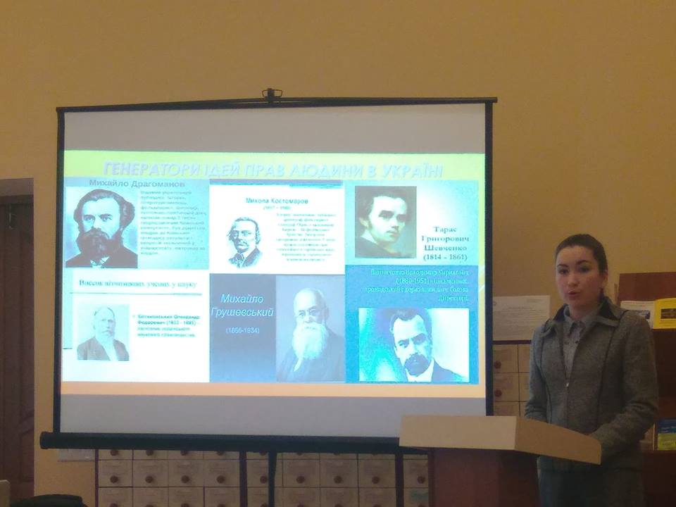 У ході семінару студентка першого курсу спеціальності «Право» Демченко Катерина майстерно презентувала питання «Розвиток прав людини в історико-правовій думці України», а Кривцов Артем – студент третього курсу спеціальності «Право» ділився своїми напрацюваннями та досягненнями в реалізації громадянських прав людини, розкриваючи їх у виступі «Громадська організація як реалізатор захисту прав і свобод людини». Олена Олексіївна презентувала власний педагогічний досвід з питання «Формування культури прав людини через застосування коучинг технології в освітньому процесі Коледжу Миколаївського національного університету імені В.О. Сухомлинського».