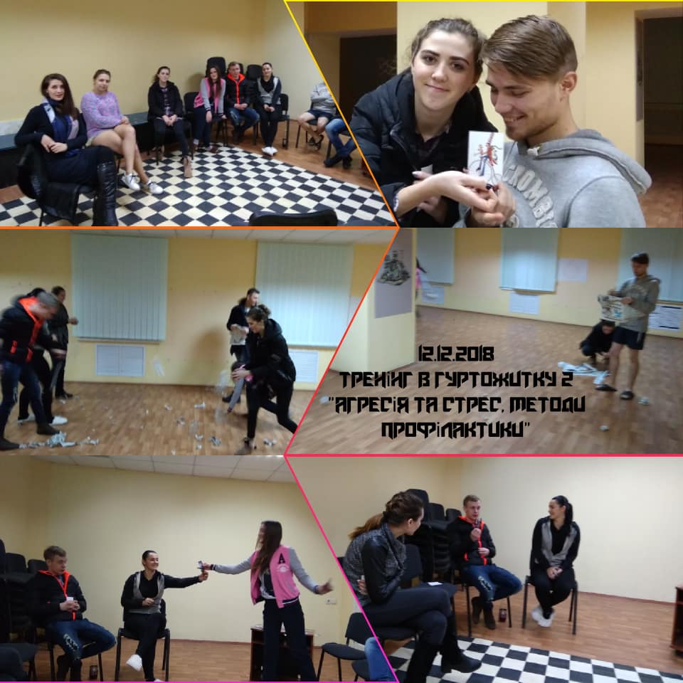 12 та 13 грудня 2018 року в гуртожитках 2 та 3 зі студентами було проведено тренінгове заняття на тему “Емоційна компетентність. Агресія та стрес, методи профілактики”.