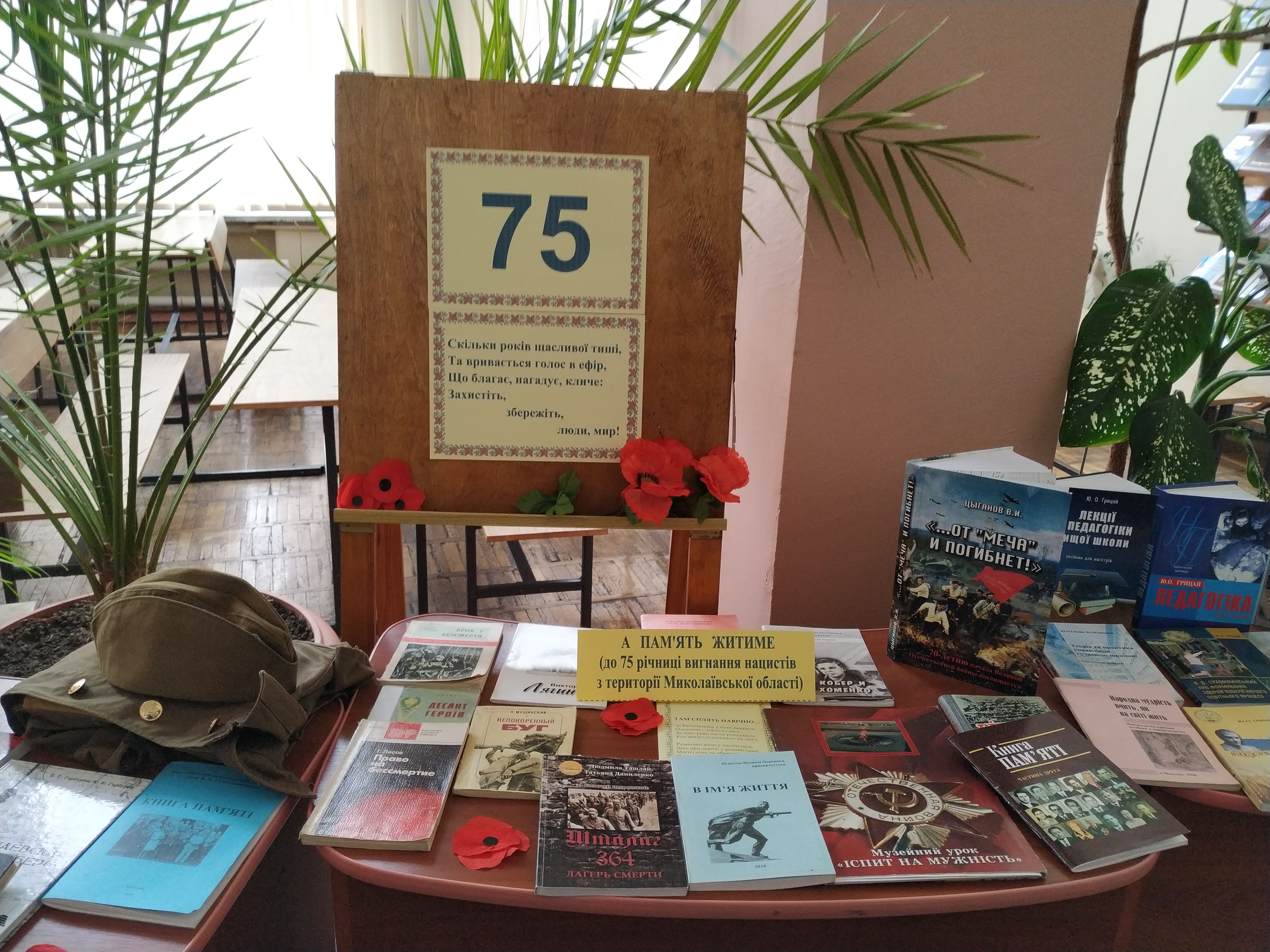 27 березня в читальному залі бібліотеки МНУ імені В.О. Сухомлинського, відбувся захід «Полум’я пам’яті», присвячений 75-й річниці вигнання нацистських окупантів з території Миколаївської області та вшануванню пам’яті почесного громадянина міста Миколаєва – полковника, професора, учасника бойових дій у роки Другої війни Ю.О. Грицая.