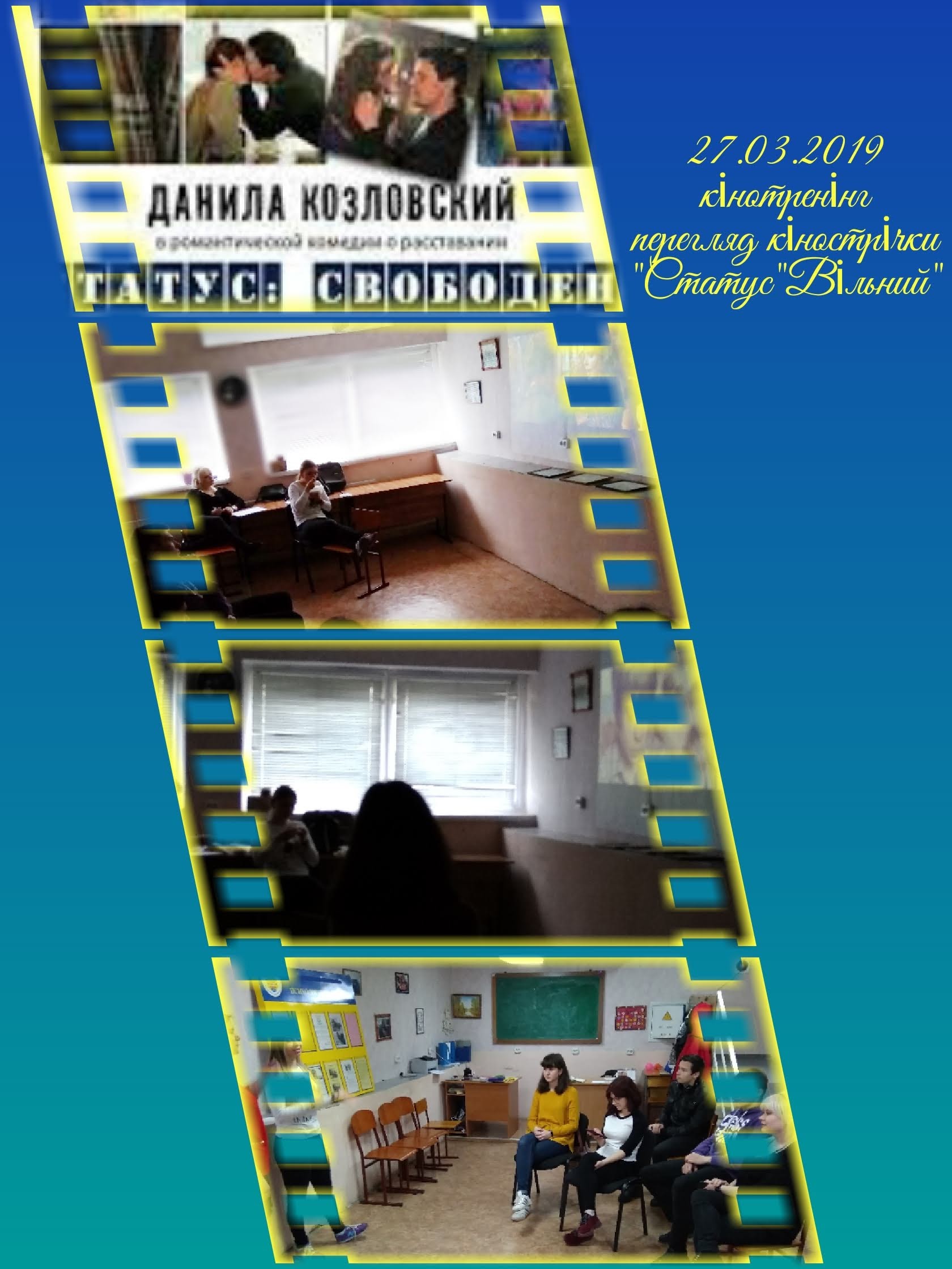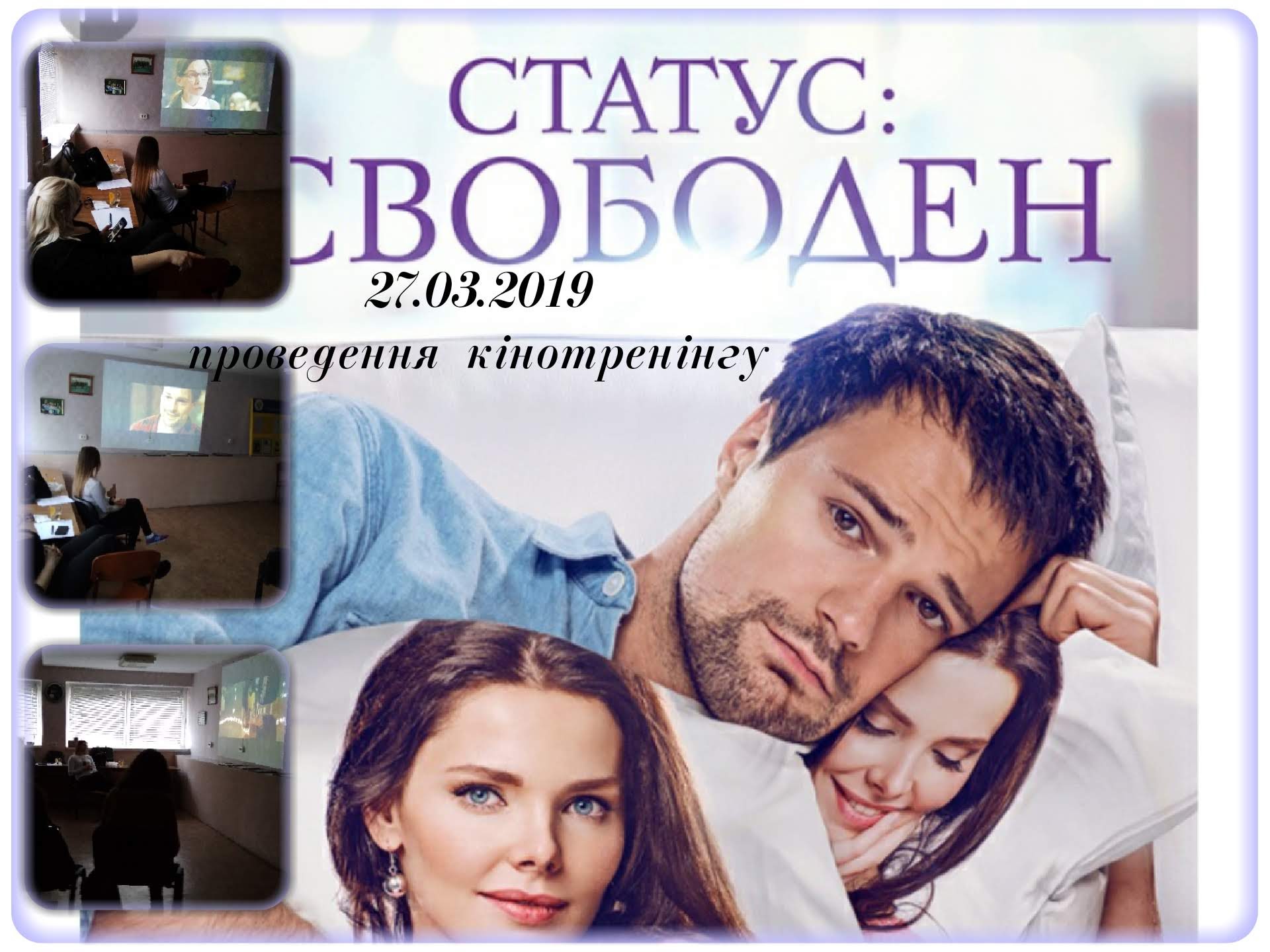 27 березня 2019 року в рамках Центру психологічної служби університету був проведений кінотренінг, під час якого демонструвався фільм “Статус “Вільний” для студентів 1-3 курсів спеціальності Психологія факультету педагогіки та психології.
