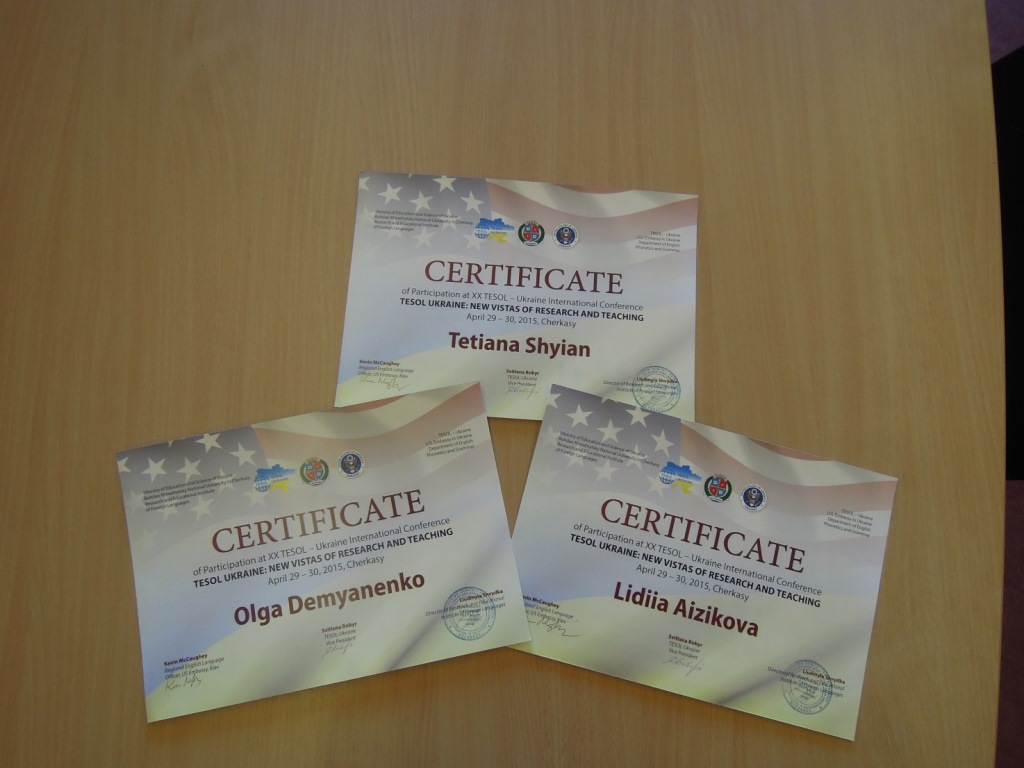 Викладачі кафедри іноземних мов взяли участь у Міжнародній ювілейній конференції «TESOL–UKRAINE: NEW VISTAS OF RESEARCH AND TEACHING», яка проходила 29-30 квітня 2015 року в Черкаському національному університеті імені Богдана Хмельницького.