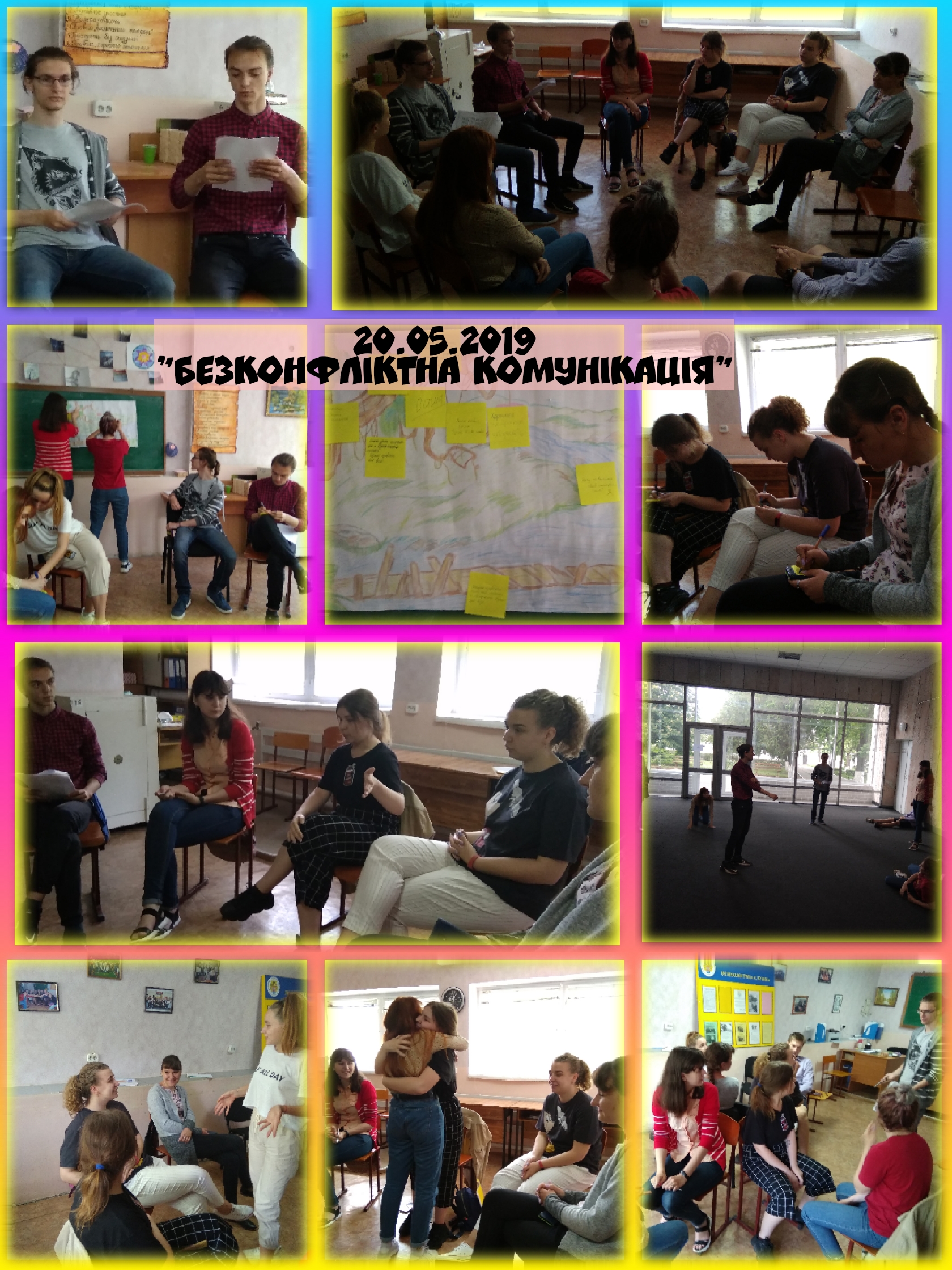 Заняття було побудовано в такий спосіб, що кожен учасник «проживав» різні ситуації, визначав свої здібності до лідерства, підтримки,творчості, визнання заслуг іншого, вміння відстоювати свою позицію, а також розуміти і приймати іншого. Так, кожен впізнав себе як партнера по спілкуванню, відкрили в собі найрізноманітніші сторони особистості: і ті, які допомагають встановити контакт, і ті, які заважають цьому.
