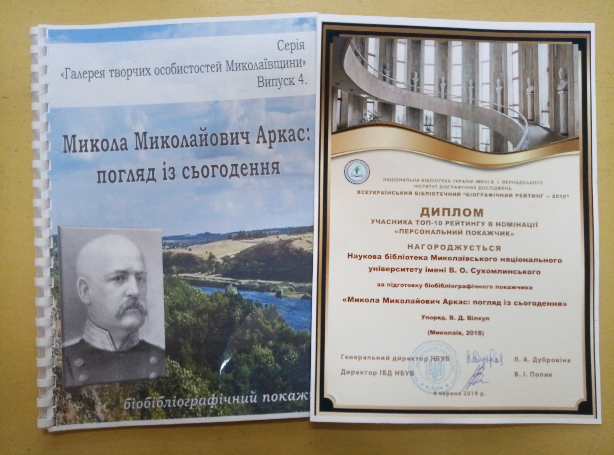 Так, біобібліографічний покажчик «Микола Миколайович Аркас: погляд із сьогодення / Упоряд. В. Д. Вілкул» Наукової бібліотеки Миколаївського національного університету ім. В.О. Сухомлинського увійшов до ТОП-10 в номінації «Персональний покажчик» та отримав диплом.