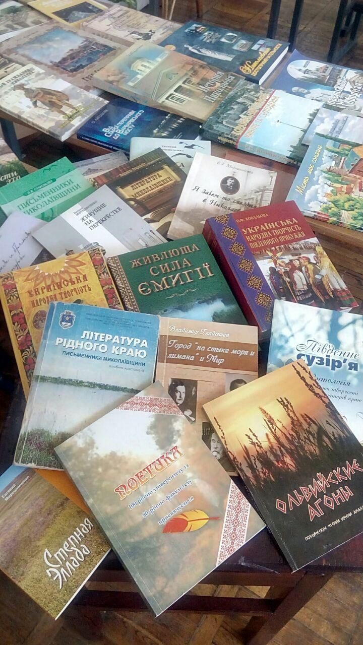Вже традиційно у читальній залі наукової бібліотеки МНУ ім. В.О. Сухомлинського ми проводимо тематичний перегляд літератури. В експозиції перегляду “Миколаївщина: морські далі і степові горизонти” пропонуємо вашій увазі книги, присвячені історії заснування нашого міста та окремих населених пунктів області, дослідженню археологічних та культурних пам’яток, про видатних людей нашого краю, а також видання творів поетів та письменників Миколаївщини.