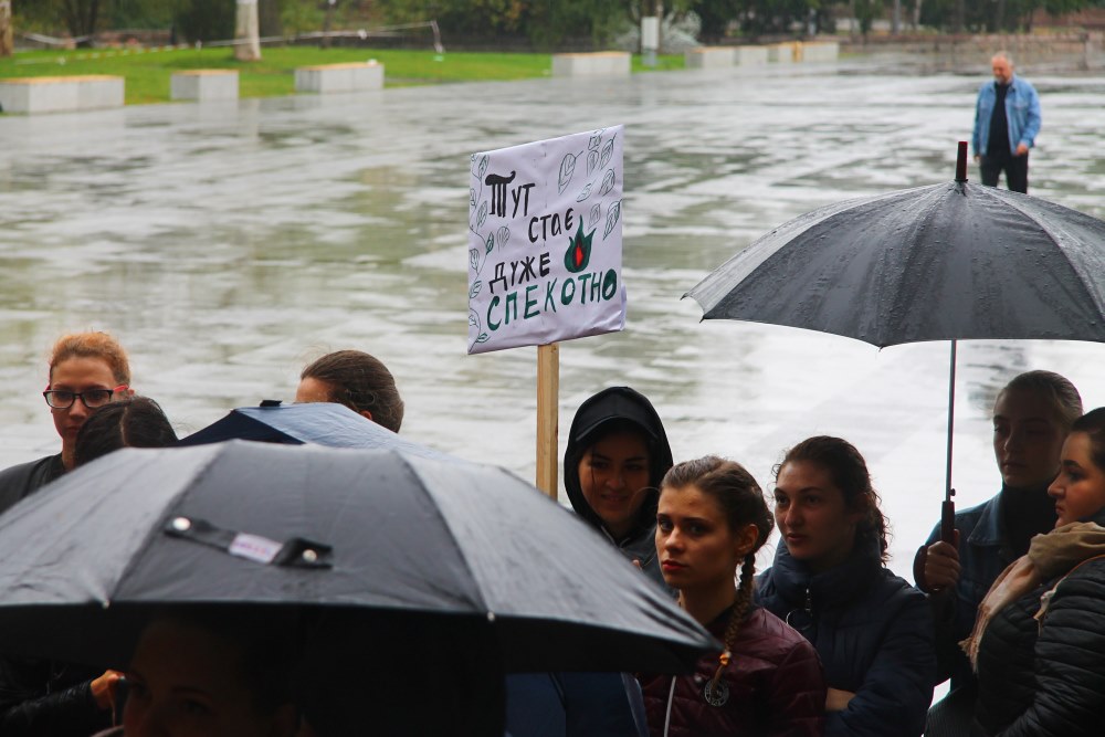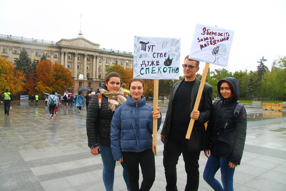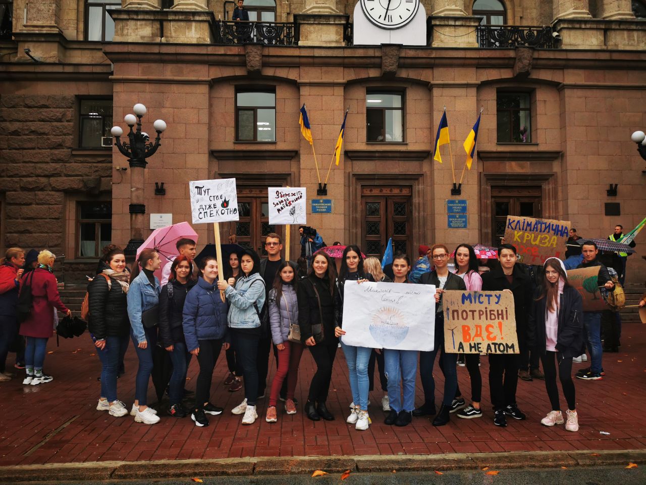 4 жовтня попри дощову погоду студенти факультету іноземної філології підтримали ініціативу громадського об’єднання Місто Сонця і пройшли кліматичним маршем по Соборной з метою привернути увагу до проблеми зміни клімату. Це не перша акція, в якій бере участь молодь МНУ, змушуючи усіх нас розуміти необхідність власного внеску в адаптацію до змін клімату задля збереження довкілля та природних ресурсів нашим майбутнім поколінням. Планети Б не існує, Миколаїв – місто моєї мрії із 100% ВДЕ, коли планета палає – моя хата не скраю – такими гаслами студенти виражали свою небайдужість та активну громадську позицію. Сподіваємося, такі акції змушуватимуть владу міста брати курс на збереження довкілля.