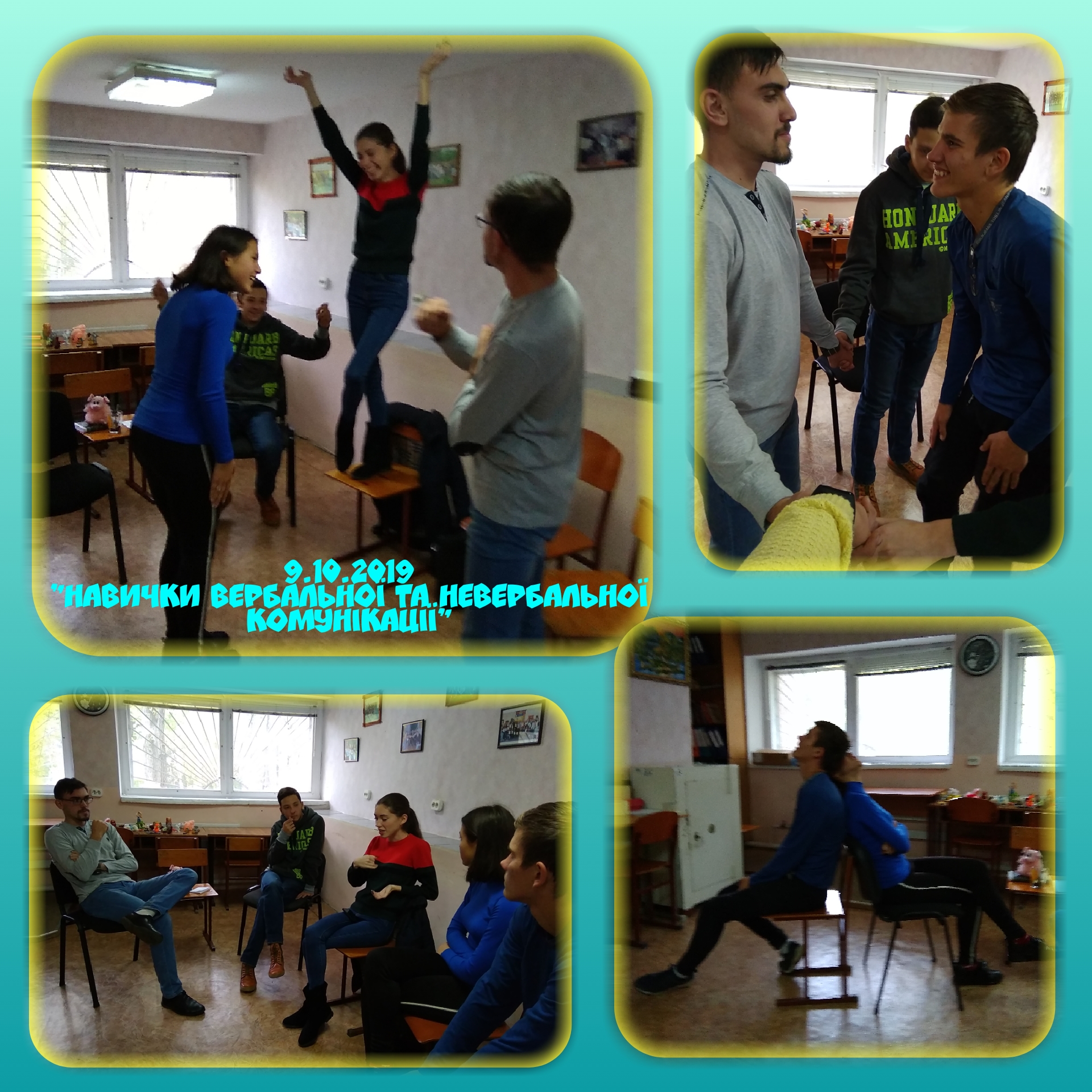 09.10.2019 року в рамках Центру психологічної служби університету було проведено тренінгове заняття з теми “Навички вербальної та невербальної комунікації” для студентів 264 К групи спеціальності “Політологія та право”, 103 Б факультету фізичної культури та спорту, 100 Б механіко-математичного факультету, 218 К групи спеціальності Дошкільна освіта факультету дошкільної та початкової освіти.