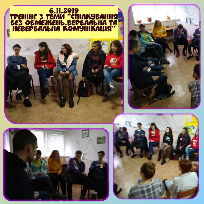 6.11.2019 року в рамках Центру психологічної служби університету було проведено тренінгове заняття з теми “Спілкування без обмежень. Вербальні та невербальні засоби комунікації” зі студентами 247 групи спеціальності “Середня освіта. Українська мова і література”, 217 групи спеціальності “Психологія” факультету педагогіки та психології.