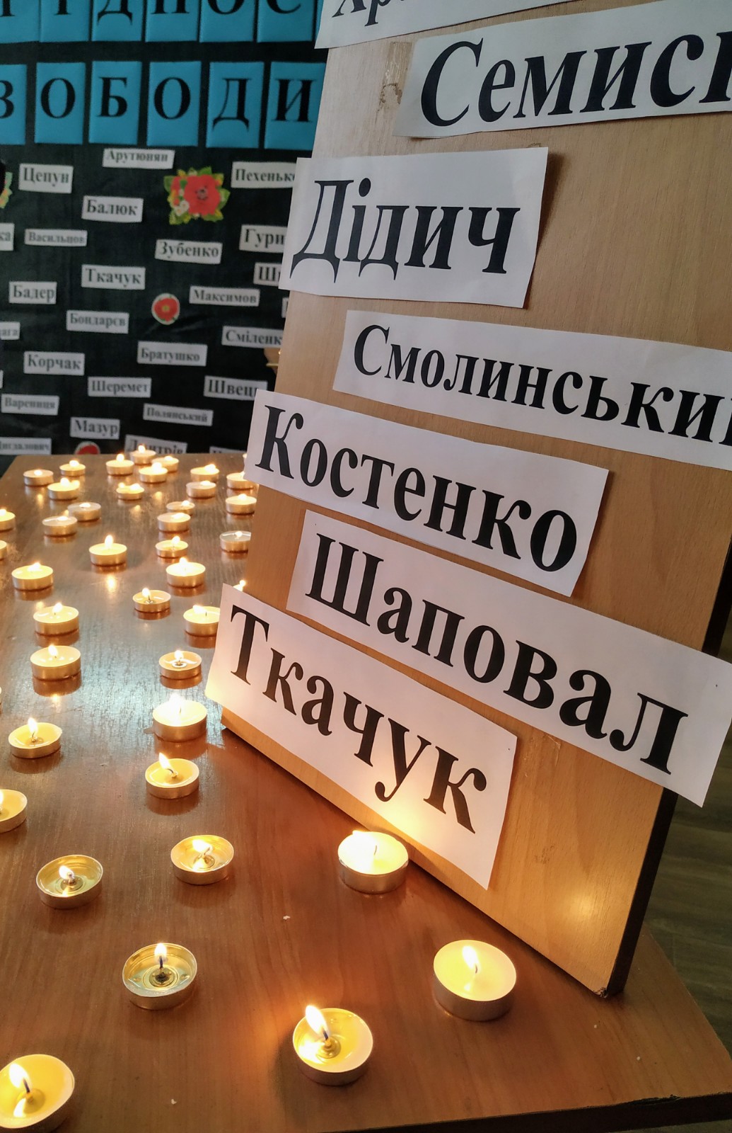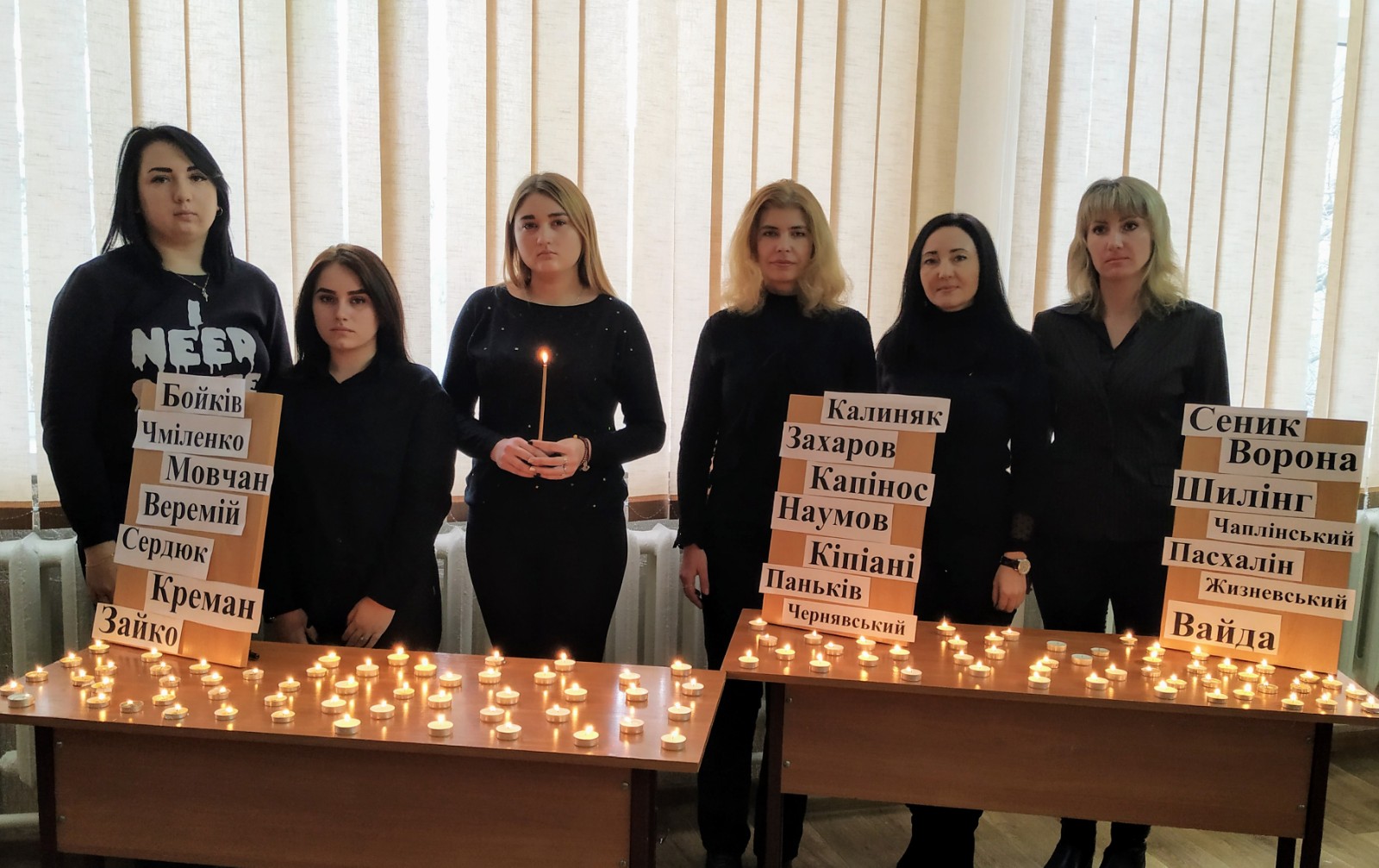 Студенти, викладачі та співробітники університету символічно запалили 200 свічок у пам’ять загиблих і вшанували хвилиною мовчання Героїв Небесної Сотні, Героїв АТО та Операції об’єднаних сил.