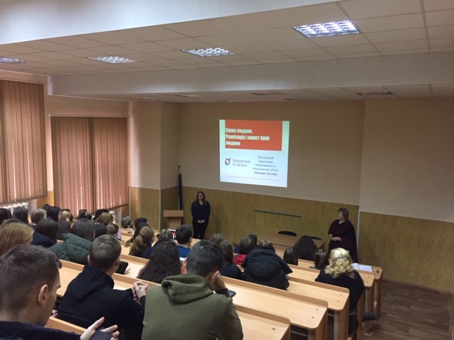 У Міжнародний день прав людини, 10 грудня 2019 року, в Коледжі Миколаївського національного університету імені В. О. Сухомлинського відбулася зустріч студентів різних спеціальностей із Світланою Одінцовою, Регіональним представником уповноваженого Верховної Ради України з прав людини в Миколаївській області. Під час зустрічі Світлана Валеріївна розповіла студентам про вплив Загальної декларації прав людини на українське законодавство, зокрема, про історію ухвалення Декларації, її значення для розвитку правового суспільства та відображення її норм у Конституції України та інших правових актах. Особлива увага була приділена ст. 5 Декларації, яка проголошує, що нiхто не повинен зазнавати тортур, або жорстокого, нелюдського, або такого, що принижує його гiднiсть, поводження i покарання. Окрім того, Світлана Валеріївна, розповіла студентам про реалізацію Офісом Омбудсмена національного превентивного механізму.