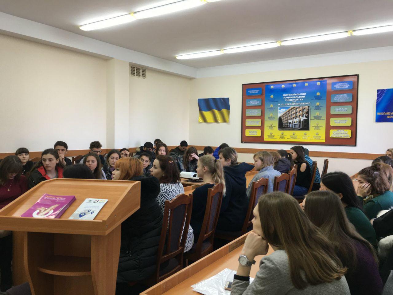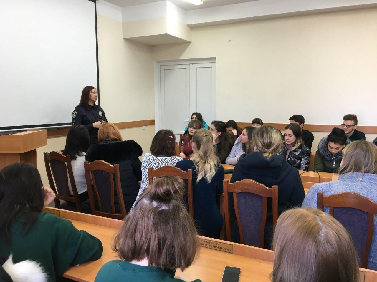 У рамках Всеукраїнського тижня права відбулась зустріч студентів університету зі старшим дільничним офіцером поліції Інгульського відділу поліції ГУНП в Миколаївській області капітаном Колотиловою А.С. Ця зустріч проходила у рамках виконання поліцією «Дорожньої карти» для постраждалих від домашнього насильства.
