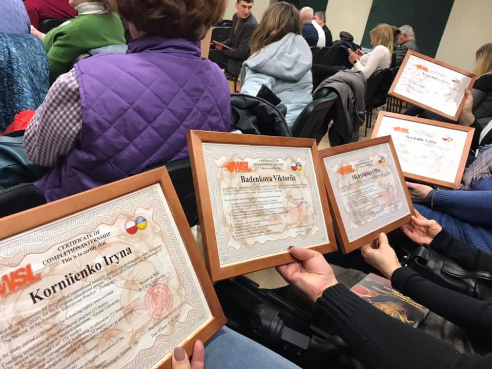 Поглибленню професійних знань, розширенню наукового світогляду, набуттю досвіду виконання додаткових завдань та обов’язків у межах спеціальності сприяло тримісячне стажування професорсько-викладацького складу кафедри української мови і літератури (Рускуліс Л. В., Баденкова В. М., Корнієнко І. А., Мхитарян О. Д.), проректора з науково-педагогічної роботи (Кузнецова О. А.) МНУ імені В. О. Сухомлинського в University College of Social Sciences (Вища школа Лінгвістична) у місті Ченстохові (Польща). Участь у Європейському освітньому проєкті «The innovative Methods and Technologies of Teaching: The Newest in the European Educational Practice» надала можливість сформувати та закріпити на практиці професійні компетентності, вивчити передовий досвід науковців, ознайомитися з новітніми технологіями в сучасній освіті.