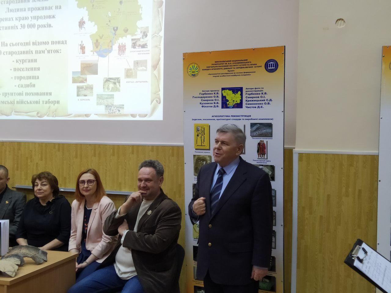 Для участі у презентації, яку підготували і провели Лабораторія археології та етнології та Наукова бібліотека, були запрошені: ректор, Академік НАПН України, професор Будак В.Д., Перший проректор Овчаренко А.В., а також відомий миколаївський видавець Ірина Гудим.