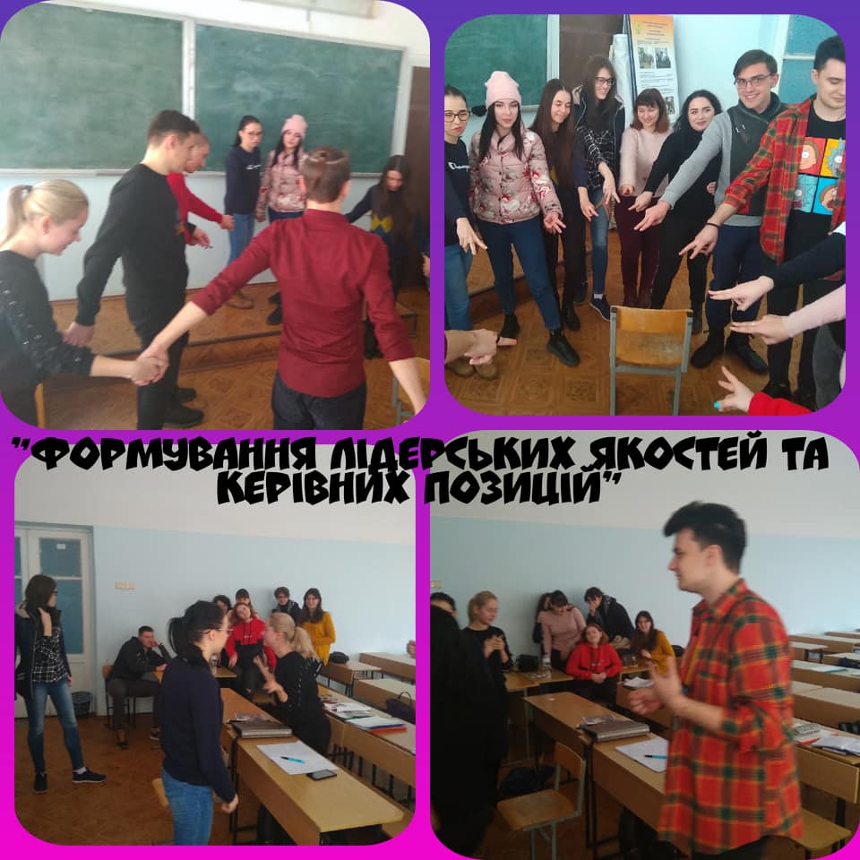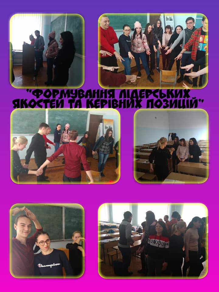 17 лютого 2020 року для студентів 2 курсу спеціальності Психологія та Політологія факультету педагогіки та психології було проведено практичне заняття з елементами тренінгу на тему “Формування лідерських якостей та керівних позиції”.