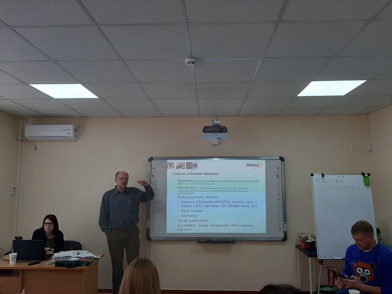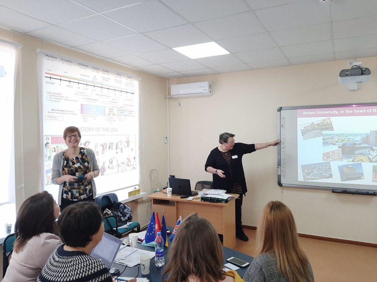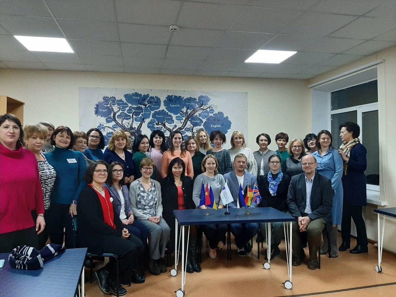 Європейську та британську делегації на зустрічі представляли: менеджер проєктів Тартуського Університету, грантхолдера у консорціумі, Крістіан Клаукс, представники Астонського Університету (Бірмінгем, Великобританія) доктор Сюзан Гартон, заступник декана із зовнішніх зв’язків, викладач із прикладної лінгвістики (TESOL) Школи мов та соціальних наук (Бірмінгем, Великобританія), директор центру CLaRA та Елізабет Віландер, викладачі Гейдельберзького Університету (Німеччина) Стефані Вітцігам та Леоні Екзаркос, ректор Гейдельберзького Університету Ганс-Вернер Гунеке.