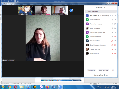 15 травня для студентів першого курсу було проведено засідання круглого столу з обговорення питань патріотичного виховання молоді. Кандидат педагогічних наук, доцент кафедри педагогіки та інклюзивної освіти Оксана Євгенівна Олексюк створила усі необхідні технічні умови на платформі онлайн-занять ZOOM задля успішного засвоєння студентами пріоритетності патріотичного лідерства.