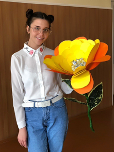 Для кожного студента була зроблена власна квітка, він її тримає в руках і розповідає, що у нього асоціюється з ДИТИНСТВОМ.