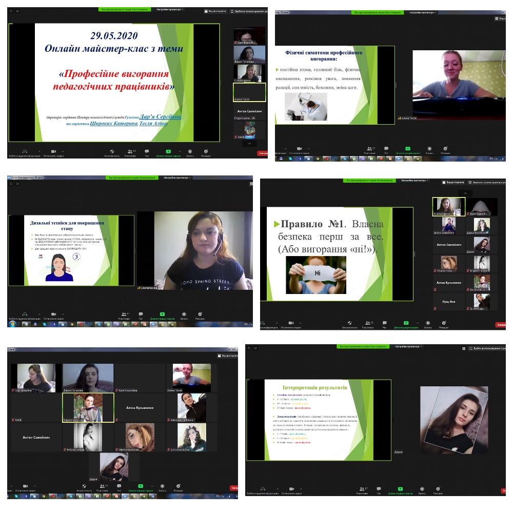 29 травня 2020 року був проведений психолого-педагогічний семінар на тему “Професійне та емоційне вигорання мабуйтніх педагогічних працівників” для студентів 2-3 курсів спеціальності “Психологія” та 5 курсів спеціальності “Соціальна робота” факультету педагогіки та психології.