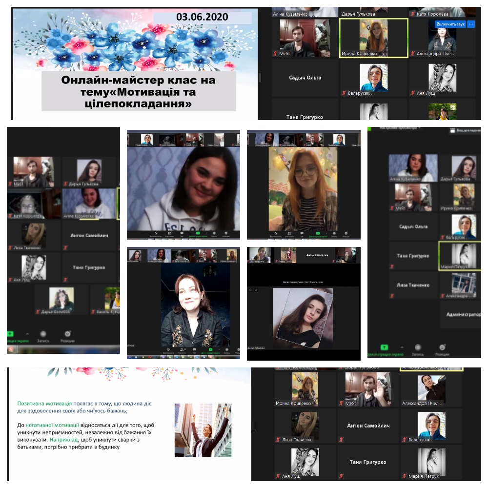 3 червня 2020 року для студентів 2-3 курсу спеціальності “Психологія” ДФН та ЗФН та 5 курсу спеціальності “Соціальна робота” був проведений майстер-клас онлайн на тему “Мотивація та цілепокладання”.