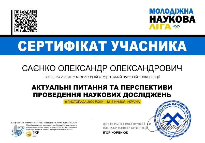 6 листопада 2020 року відбулася Міжнародна студентська наукова конференція «Актуальні питання та перспективи проведення наукових досліджень» в місті Вінниці, Україна.