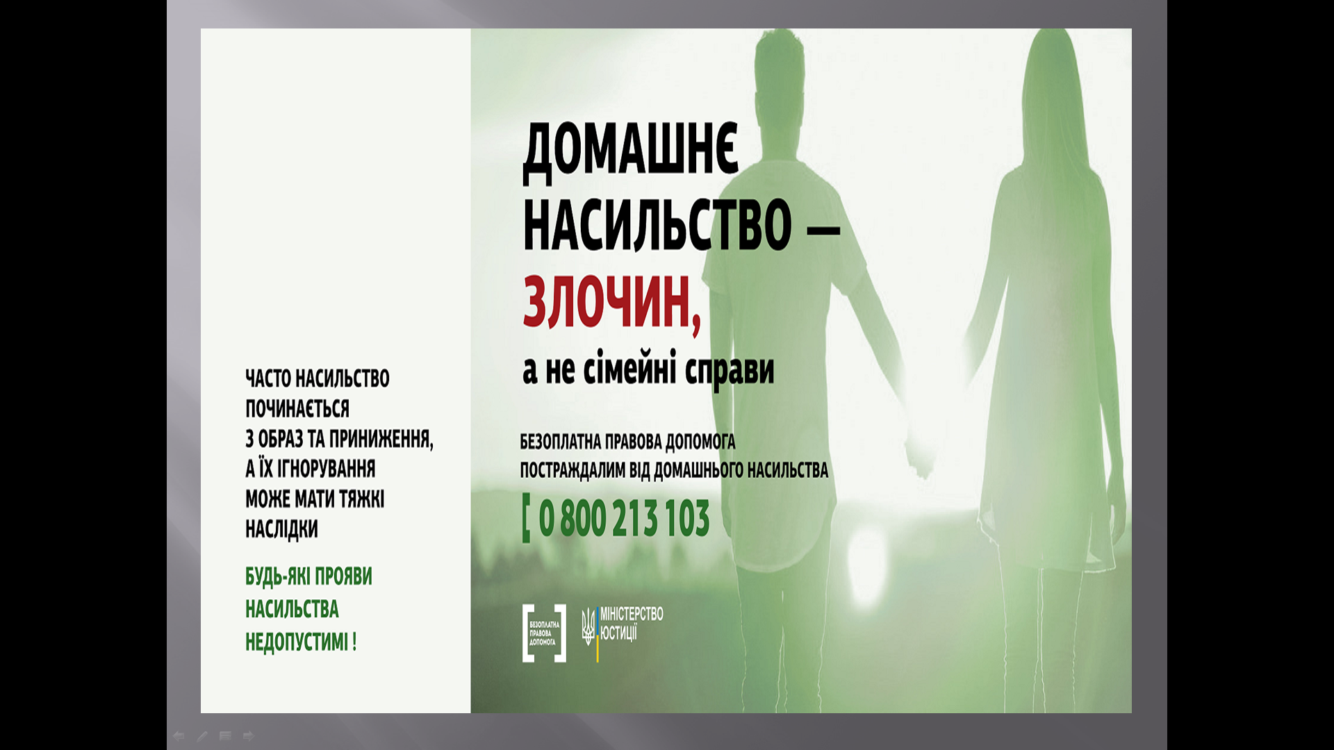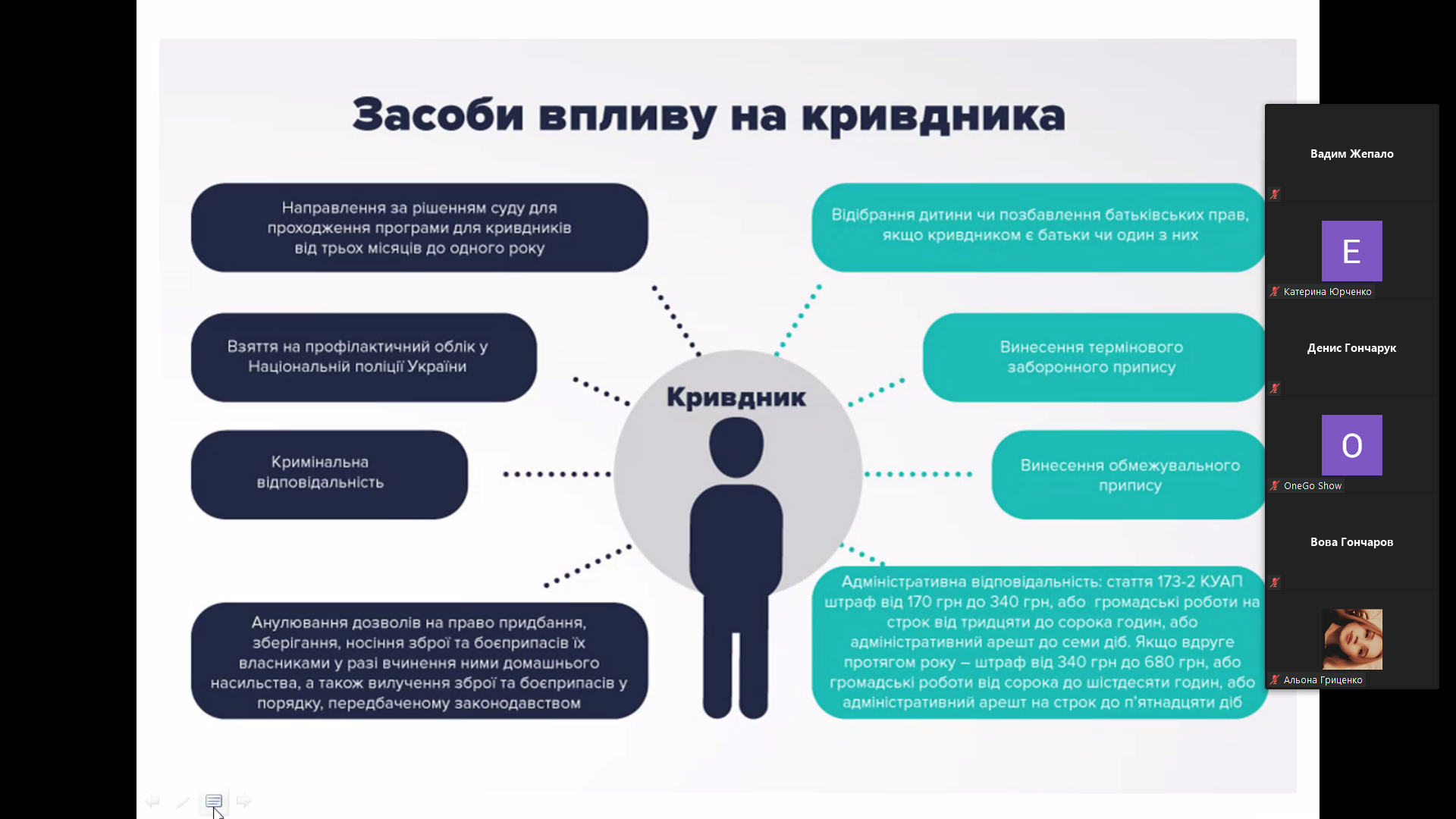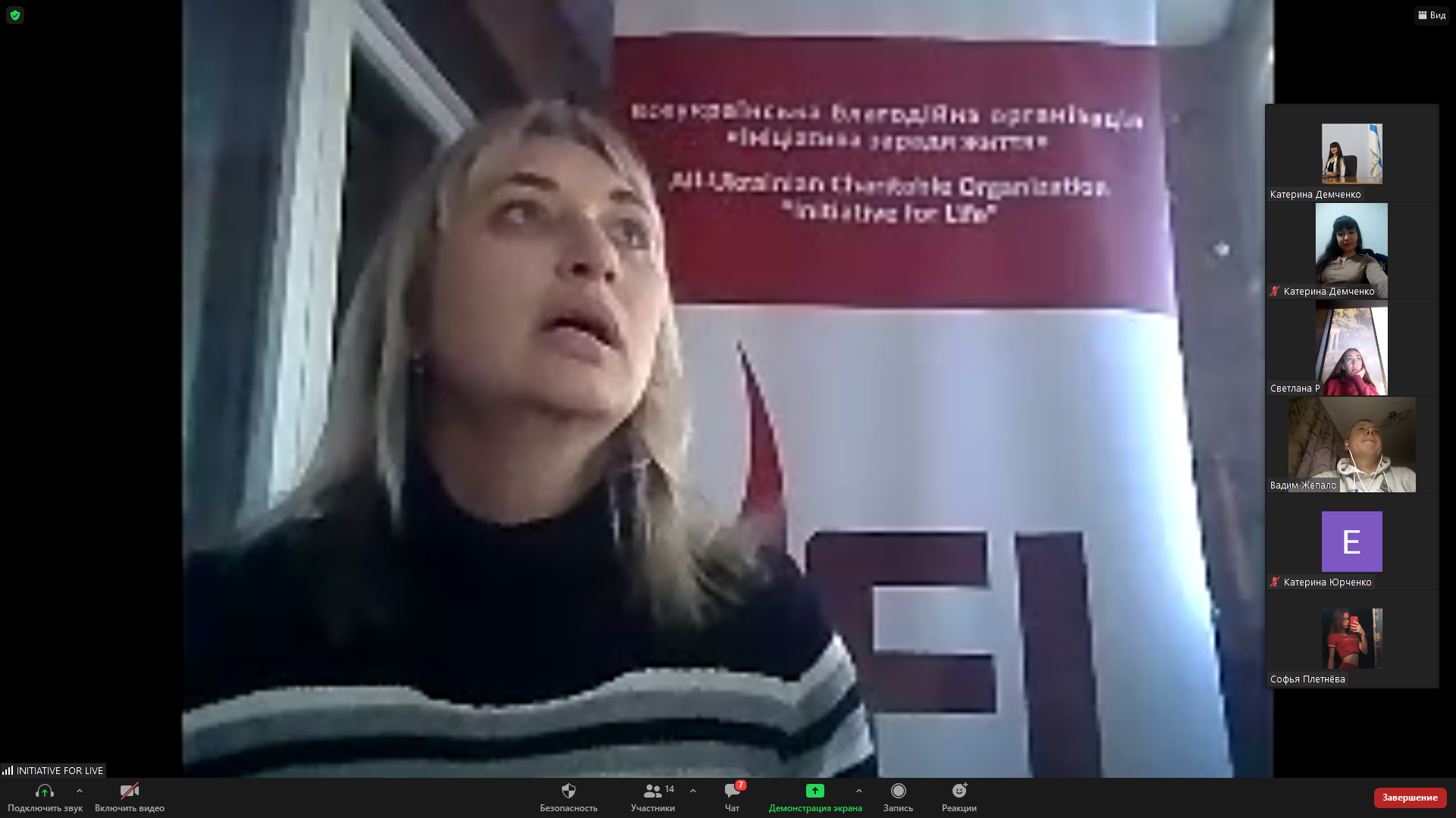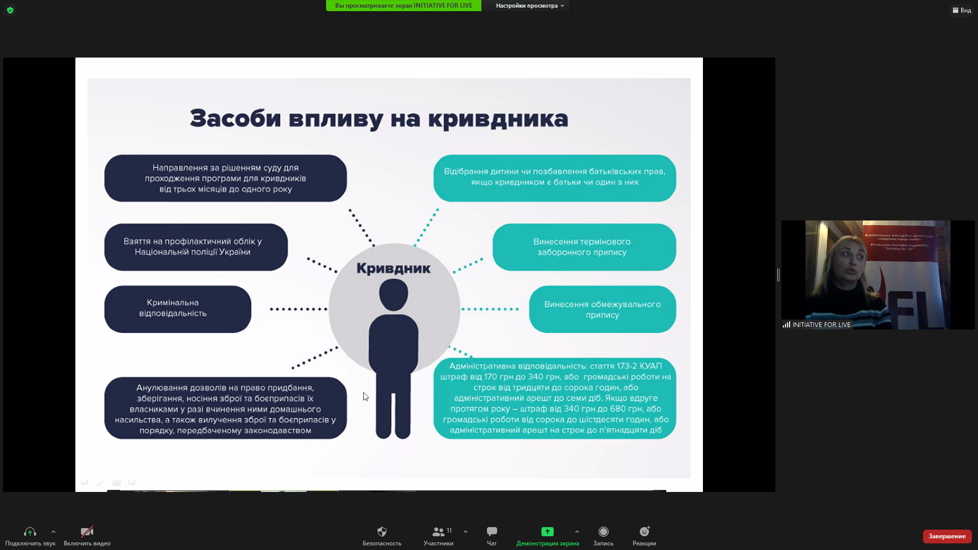 Вікторія Лапшина – виконавча директорка Всеукраїнської благодійної організації «Ініціатива заради життя» презентувала тему: «Соціально-психологічна робота з особами, постраждалими від домашнього насильства, та їх кривдниками».