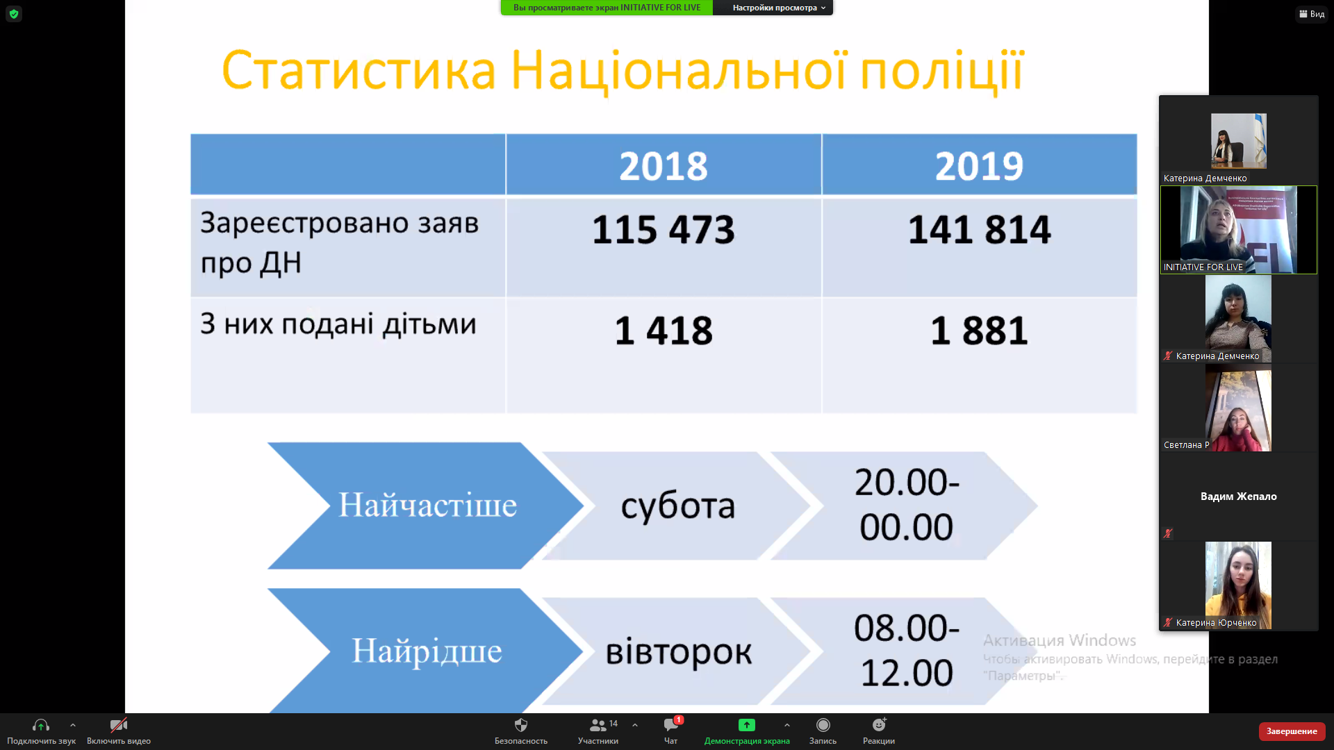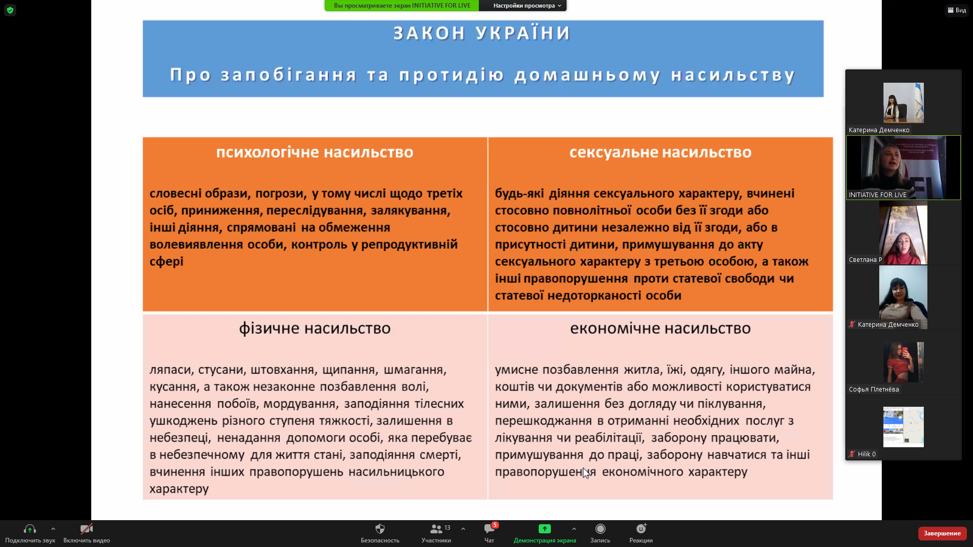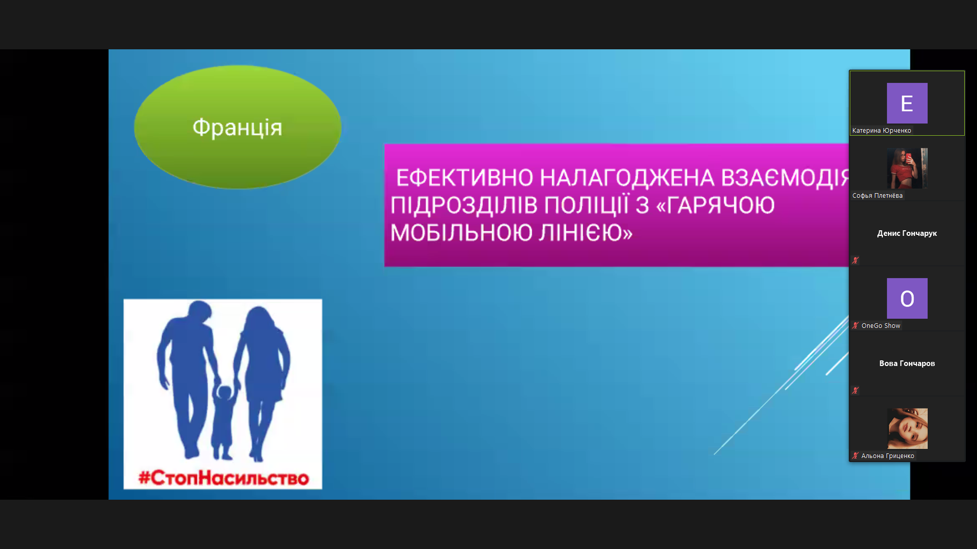 Вікторія Лапшина – виконавча директорка Всеукраїнської благодійної організації «Ініціатива заради життя» презентувала тему: «Соціально-психологічна робота з особами, постраждалими від домашнього насильства, та їх кривдниками».