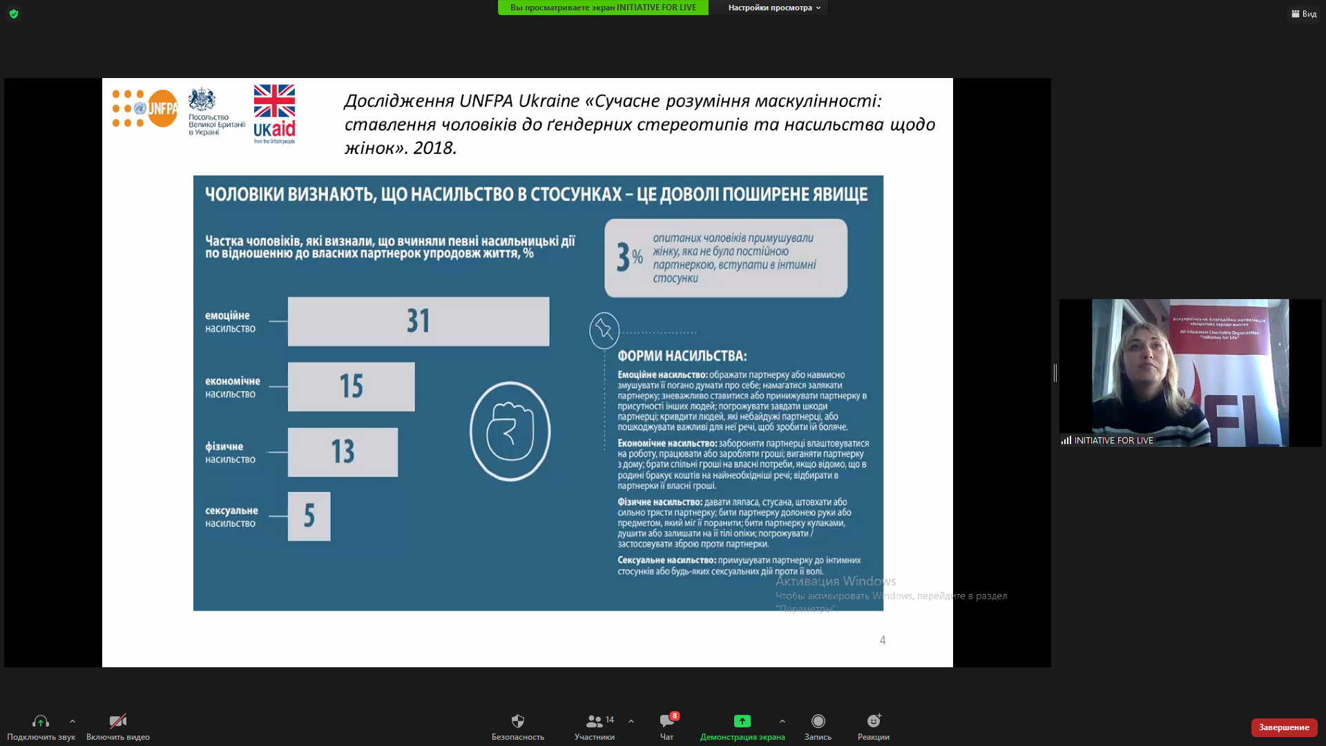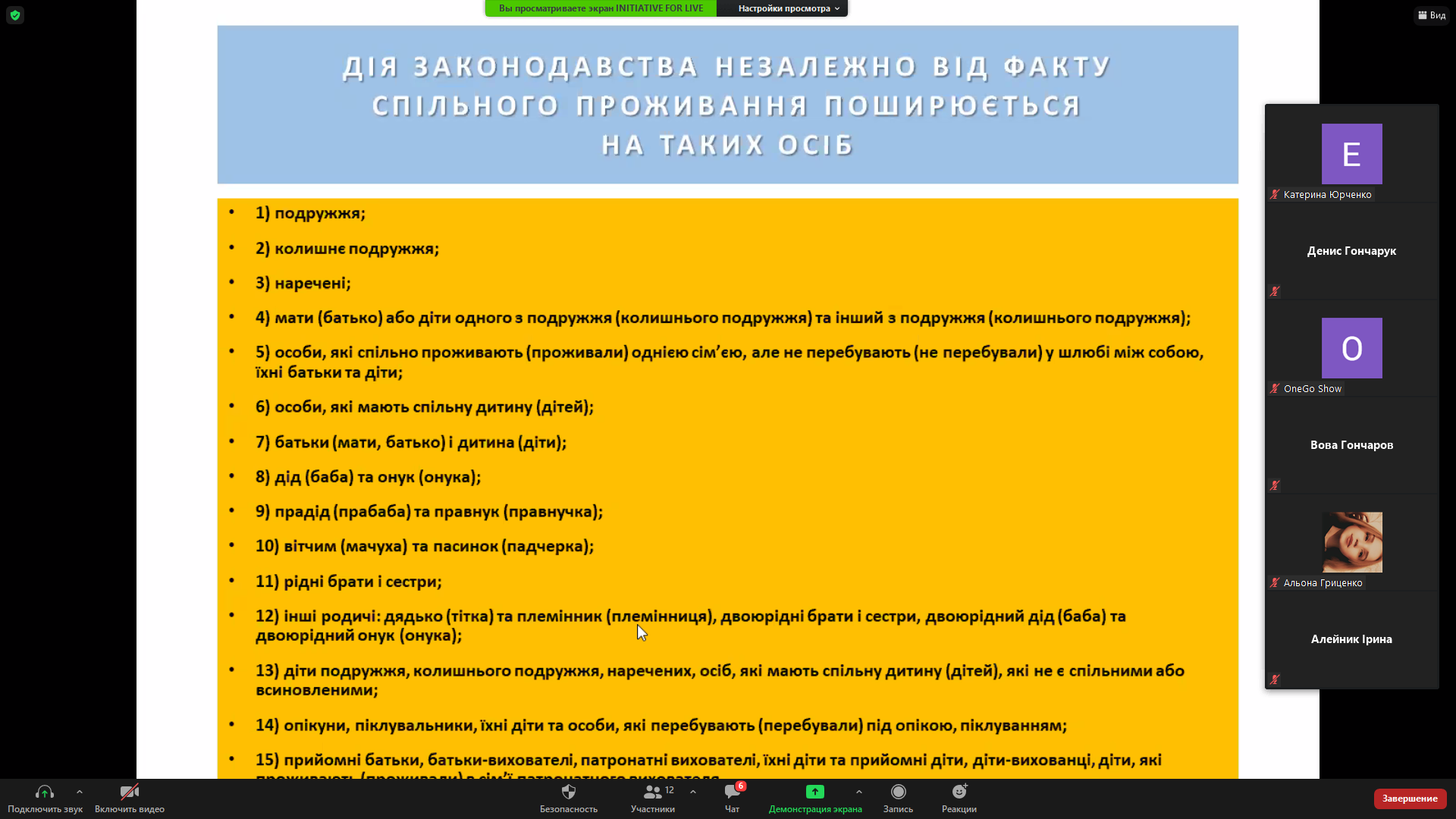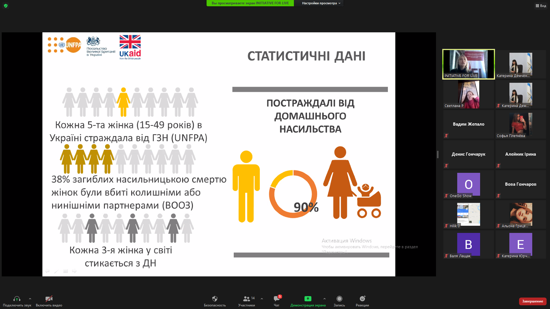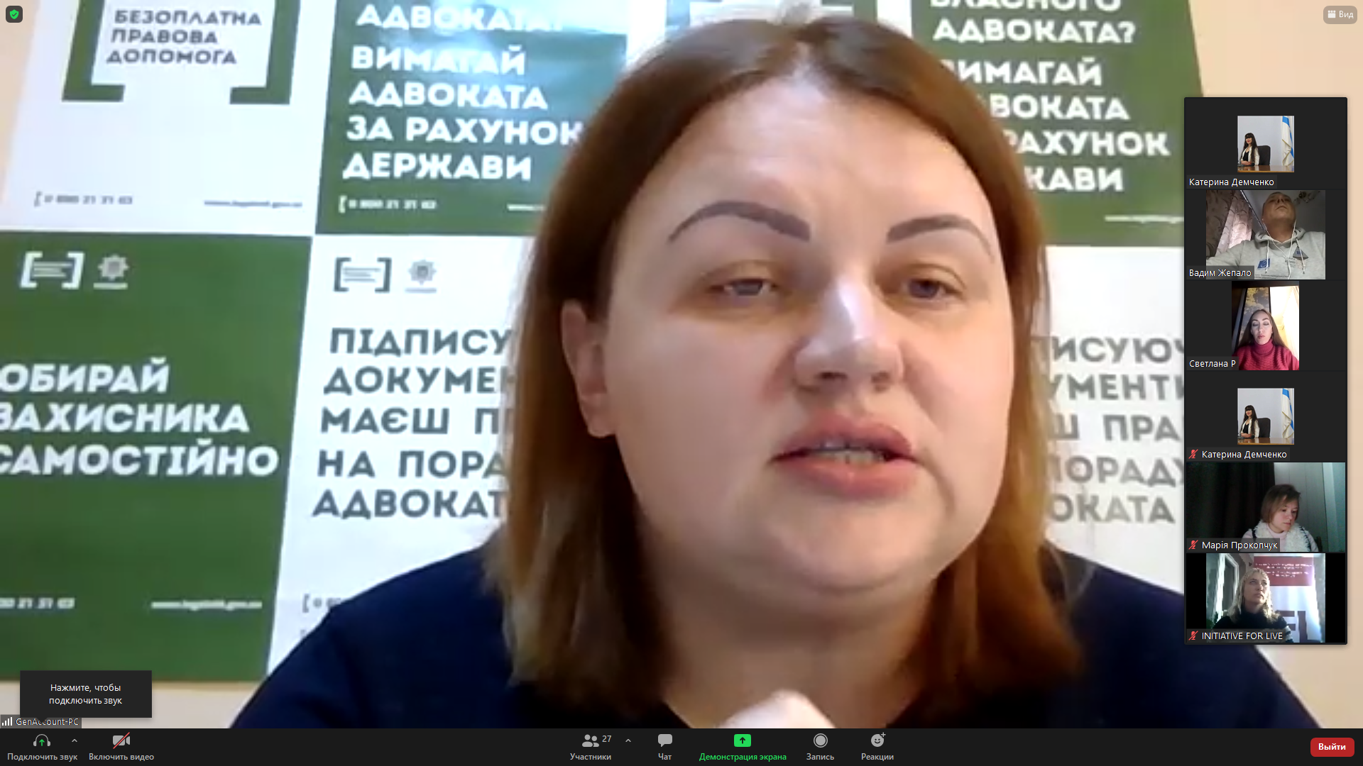 Вікторія Лапшина – виконавча директорка Всеукраїнської благодійної організації «Ініціатива заради життя» презентувала тему: «Соціально-психологічна робота з особами, постраждалими від домашнього насильства, та їх кривдниками».