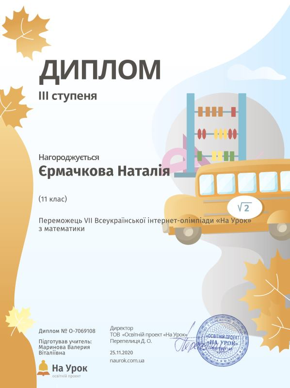 25 листопада завершилася інтернет-олімпіада з математики «Осінь 2020 від українського онлайн-порталу для вчителів «На Урок».
