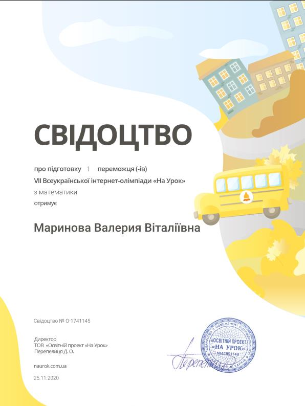 Щирі вітання нашим переможцям та їх наставнику Маріновій Валерії Віталіївні!