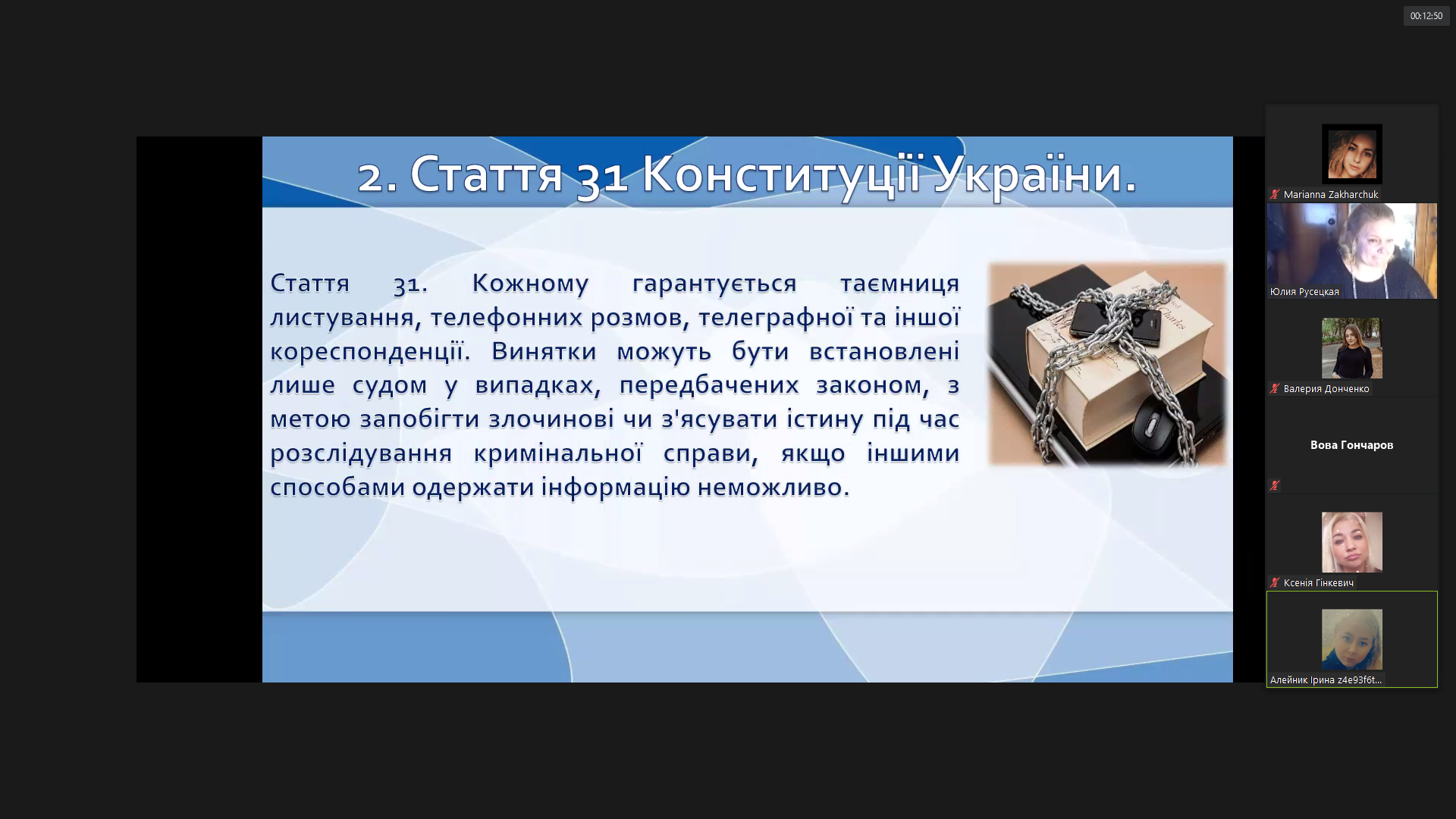 Алейник Ірина Сергіївна – Гарантії недоторканності житла та таємниці листування, телефонних розмов, телеграфної та іншої кореспонденції;