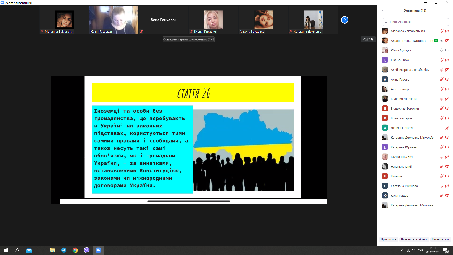 08 грудня 2020 року у Відокремленому структурному підрозділі «Фаховому коледжі Миколаївського національного університету імені В.О.Сухомлинського» за участю викладачів та студентів коледжу було проведено Круглий стіл онлайн на тему: «Конституція України: права, свободи і обов’язки людини та громадянина», присвячений святкуванню Дня прав людини, який відзначається 10 грудня.