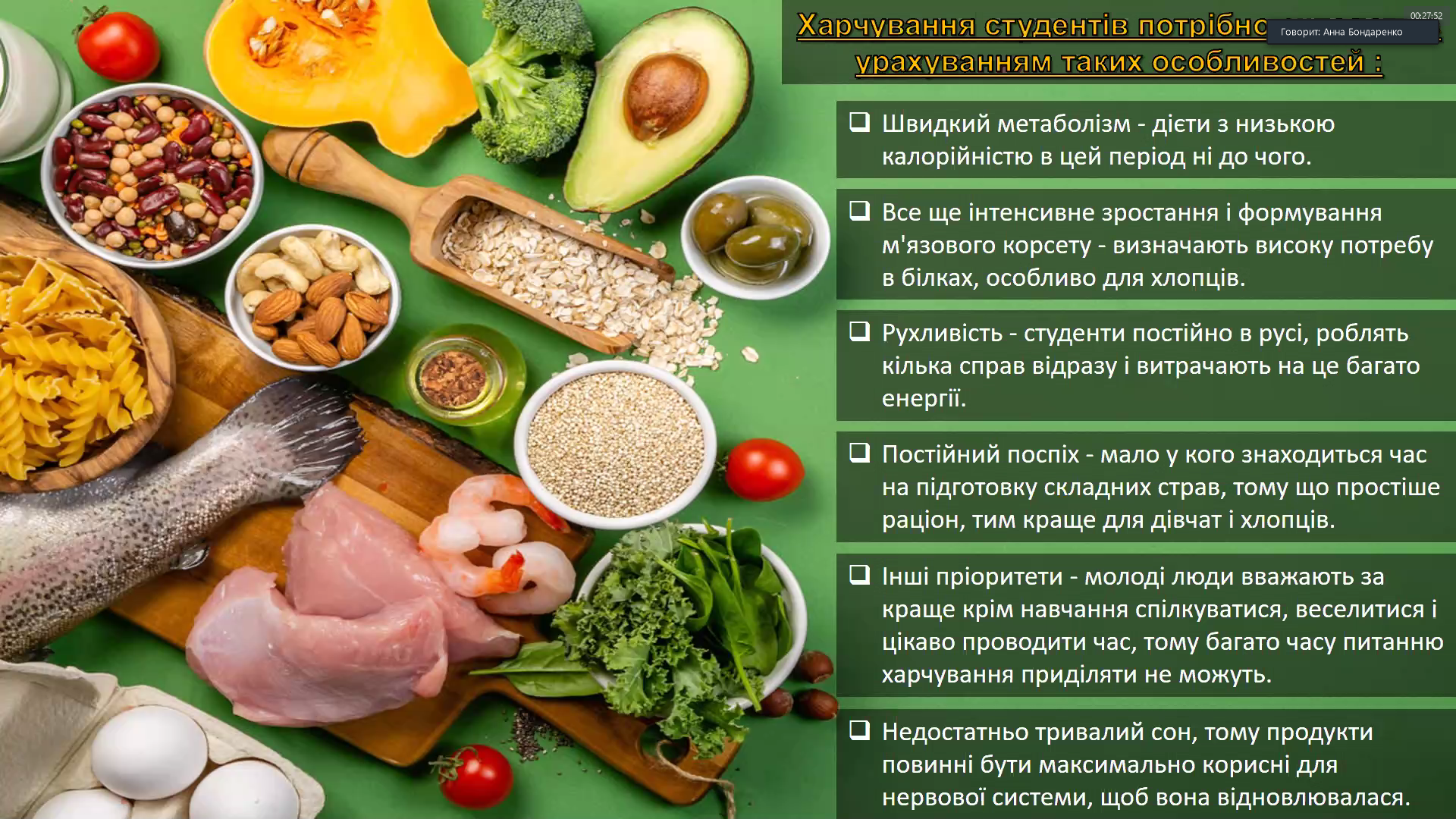 3. АННУ БОНДАРЕНКО, студентку третього курсу спеціальності «Прикладна математика» з доповіддю з доповіддю «Здорове збалансоване харчування, як основа житедіяльності» (365 група).
